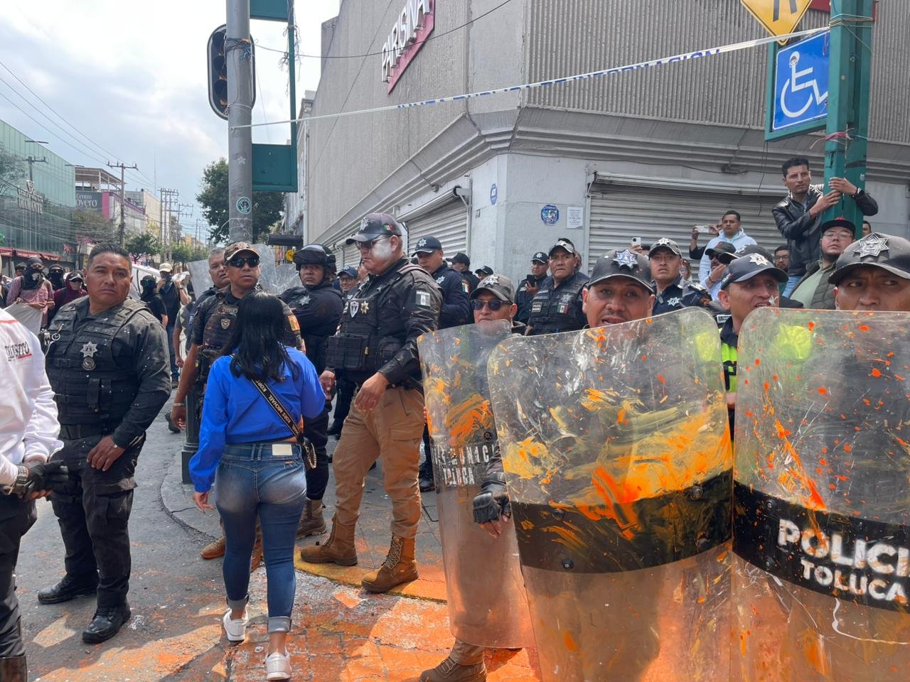 Ante la presencia de manifestantes que realizaron actos de vandalismo en el centro de la ciudad, elementos de la Dirección General de Seguridad y Protección de Toluca mantienen presencia preventiva en la zona, con el objetivo de proteger a la ciudadanía, los comercios y el patrimonio público.