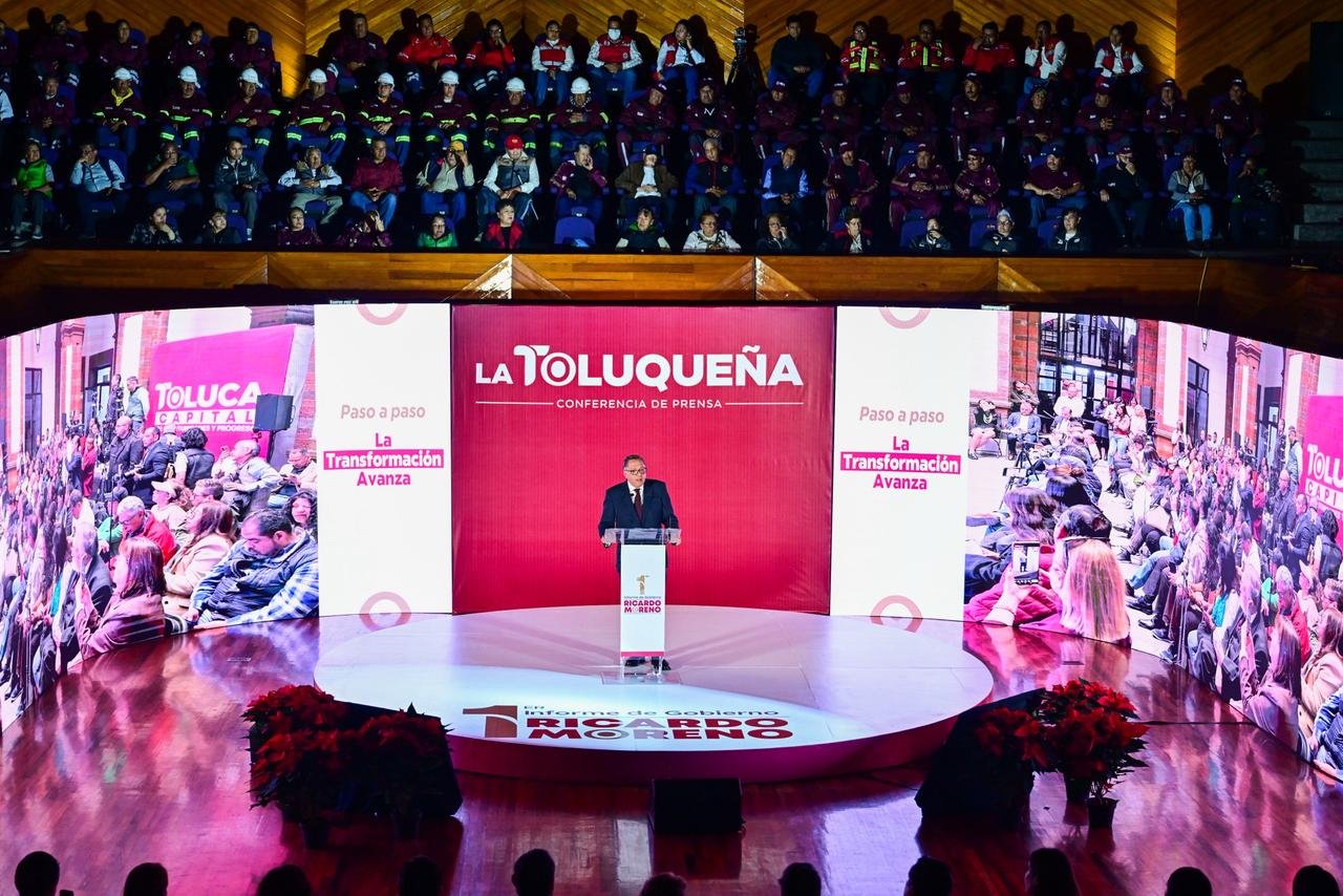 TOLUCA, Estado de México.– Al acudir al Primer Informe de Gobierno del alcalde de Toluca, Ricardo Moreno Bastida, la Gobernadora Delfina Gómez Álvarez reconoció los logros alcanzados en la capital mexiquense para el desarrollo social, como un reflejo de la Cuarta Transformación; destacó la inversión de esta administración de más de 362 millones de pesos del programa Mujeres con Bienestar para más de 14 mil beneficiarias de la capital.