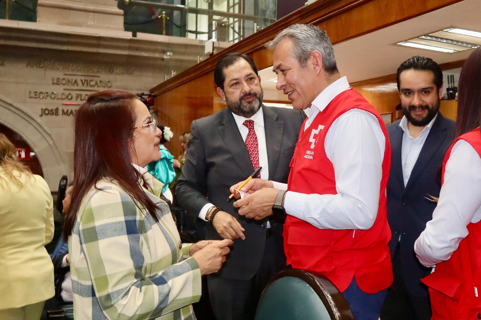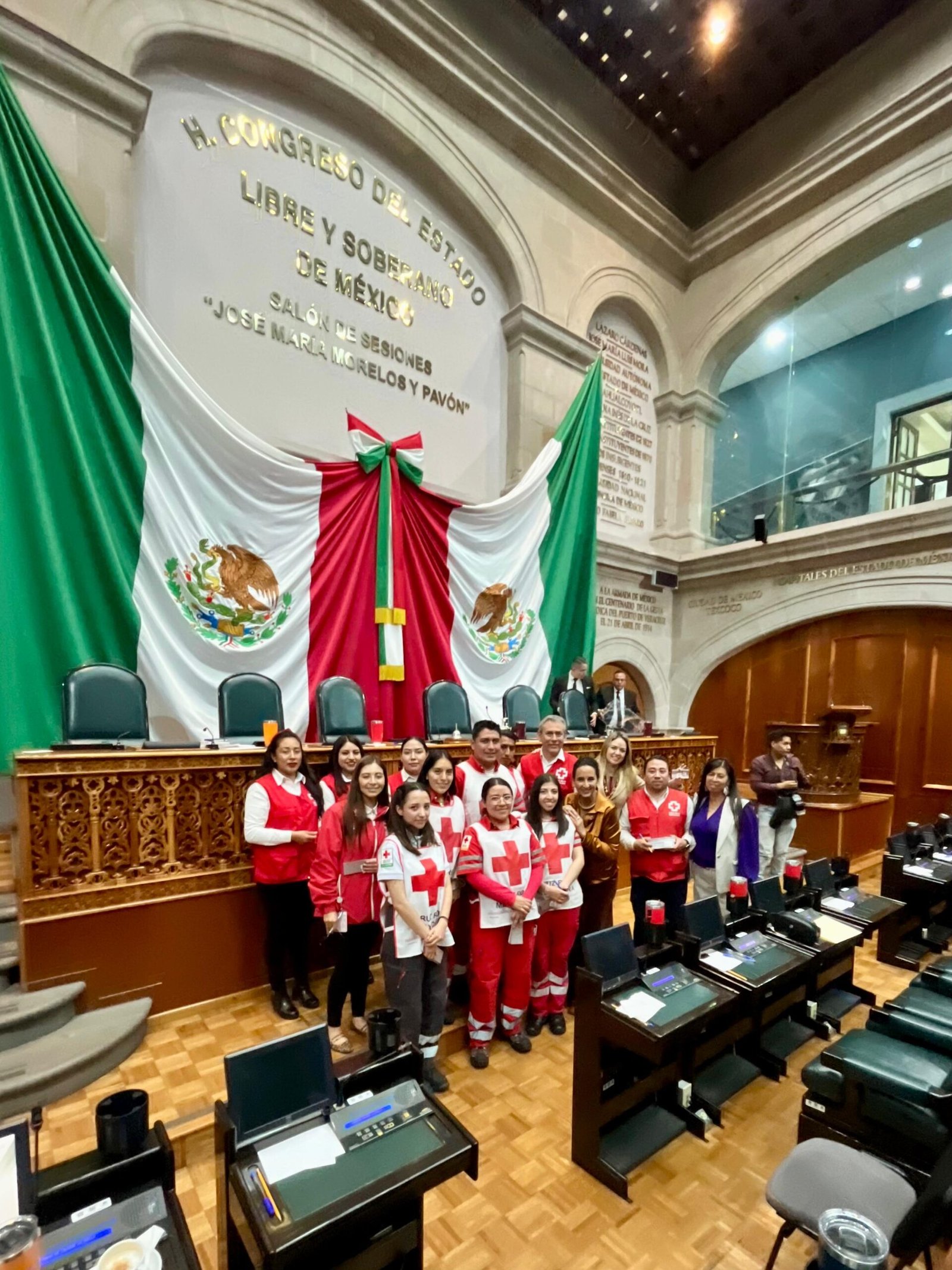 TOLUCA, México.- Voluntarias y voluntarios de Cruz Roja Mexicana Delegación Toluca-Metepec estuvieron este miércoles en el pleno de la LVII Legislatura del Estado de México, a invitación de los miembros de la Junta de Coordinación Política, que preside el diputado José Francisco Vázquez Rodríguez, para hacer un llamado a la solidaridad con la institución y promover la participación en el Primer Sorteo que organiza la institución para recaudar fondos con el objetivo de iniciar la remodelación y construcción del nuevo hospital de la Cruz Roja en Metepec.