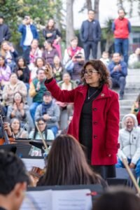 Uno de los momentos más celebrados ocurrió cuando la rectora Zarza Delgado tomó la batuta para dirigir la Tritsch-Tratsch Polka, gesto que desató aplausos y sonrisas entre las y los asistentes.