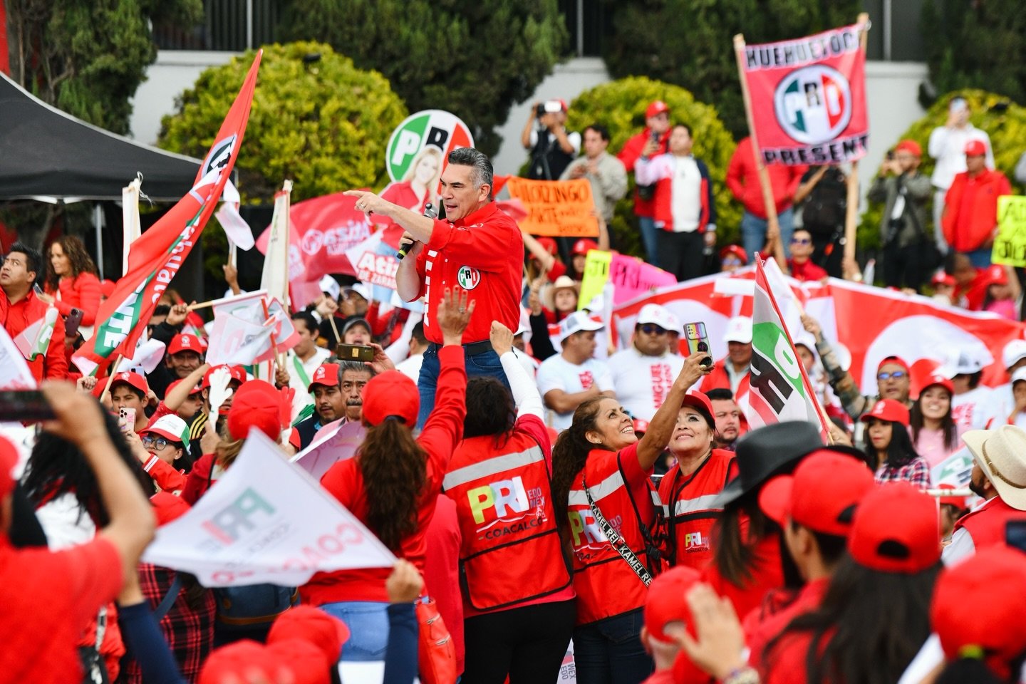 TOLUCA. – En el marco de la toma de protesta de 118 nuevas dirigencias de los comités municipales del estado de México, en la «Plaza de la Unidad» del Comité Estatal del PRI, Alejandro Moreno Cárdenas, dirigente nacional de este partido tricolor, aseveró que se encuentran listos para regresar en el 2027.