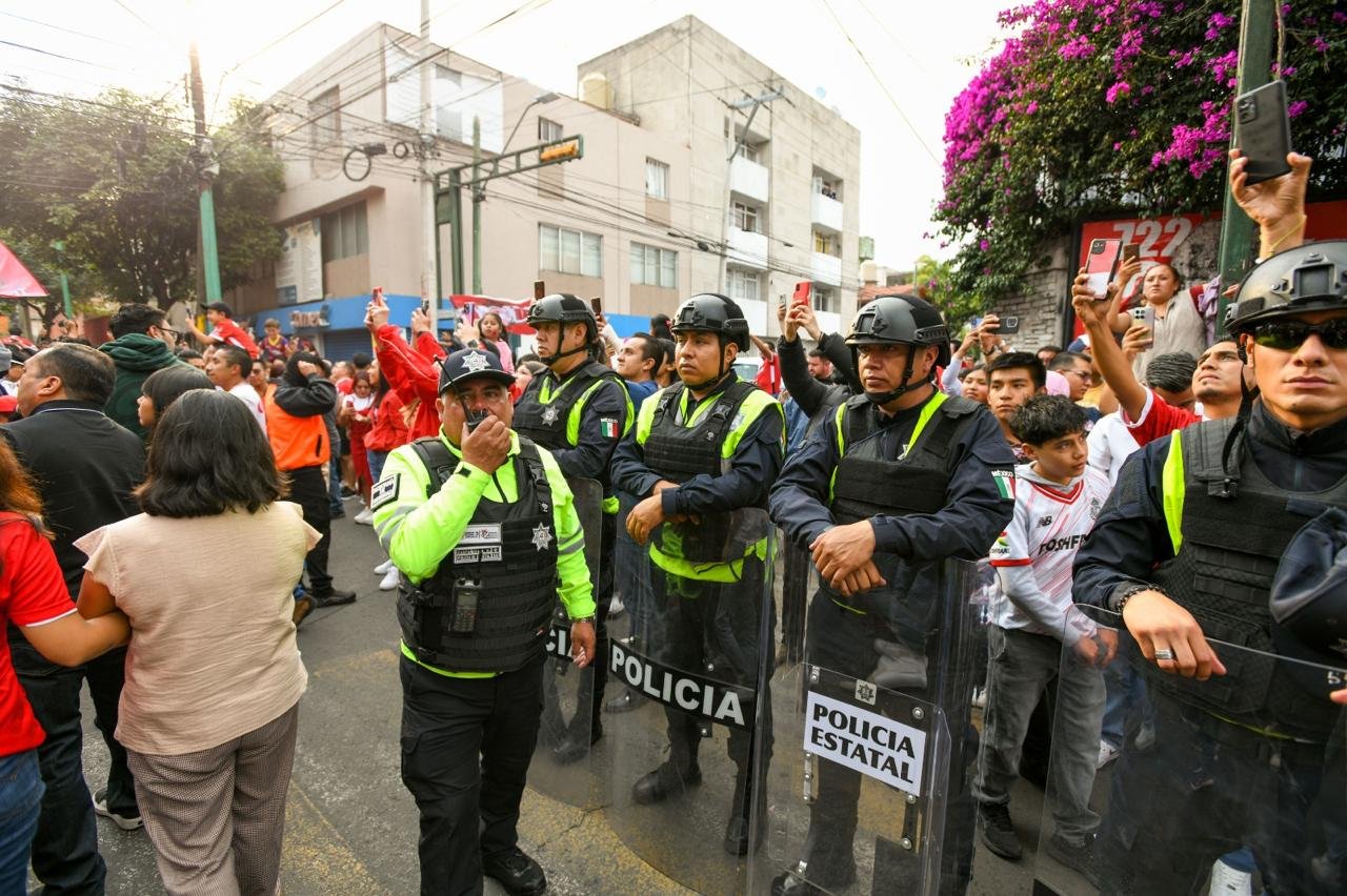 TOLUCA, Estado de México. – Con el objetivo de preservar el orden y salvaguardar la integridad de quienes asisten al encuentro deportivo a disputarse entre los equipos Toluca vs Monterrey, la Secretaría de Seguridad del Estado de México (SSEM) realiza acciones tácticas en el estadio Nemesio Diez e inmediaciones antes, durante y después del partido.