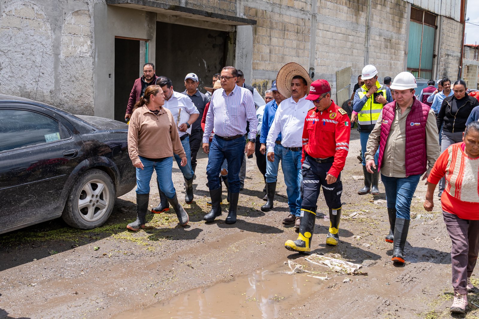 Junto a los vecinos, Moreno Bastida señaló que esta zona es una de las más bajas del municipio y recibe el 80% del agua pluvial que desciende de ríos y canales del municipio y del Valle de Toluca. Aseguró que las labores de desazolve no cesarán, pero lo primordial es retirar el agua del interior de las viviendas, después retirar basura y objetos dañados para posteriormente, realizar la limpieza de las casas y calles junto con la sanitización adecuada.