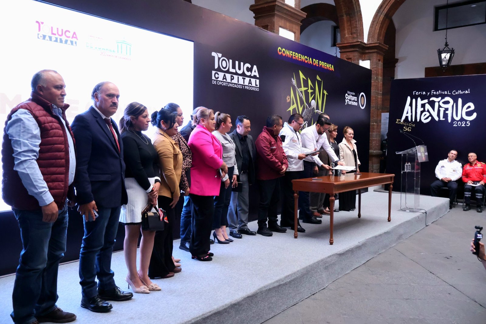 Durante la conferencia La Toluqueña el Presidente Municipal de Toluca, Ricardo Moreno, y su homólogo de Almoloya de Juárez, Adolfo Solís, firmaron un convenio de coordinación para llevar a cabo acciones planeación, ejecución, supervisión y mantenimiento de infraestructura en zonas limítrofes, entre ellas, carreteras, caminos, redes de agua potable, alumbrado y espacios públicos, en favor de las familias de esas regiones.
