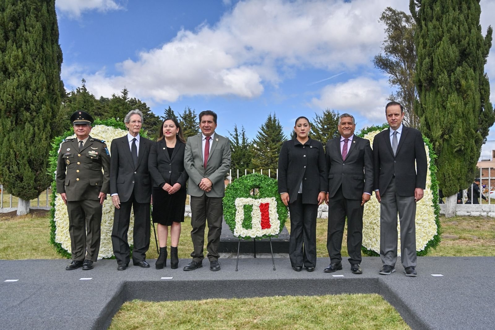 En el marco del vigésimo aniversario luctuoso del exgobernador Jorge Jiménez Cantú (1914-2005), la diputada Martha Azucena Camacho Reynoso (morena), presidenta de la Directiva del Congreso mexiquense, y el legislador Gerardo Pliego Santana (morena) participaron en la ceremonia cívica y guardia de honor en memoria del exmandatario, realizada en la Rotonda de Personas Ilustres, en el Panteón Municipal de Toluca.