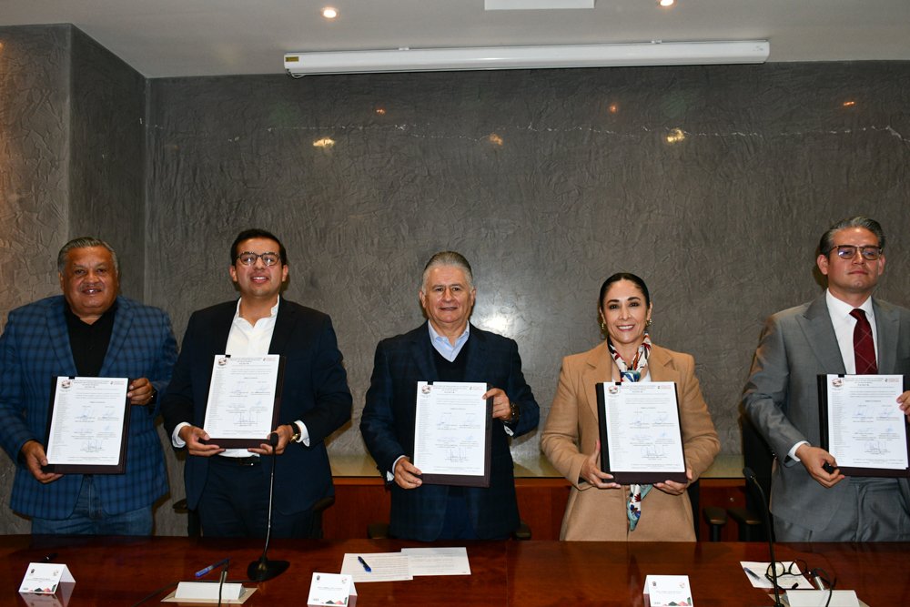 TOLUCA, Estado de México. – Herminio Cahue Calderón, secretario general del Sindicato Único de Trabajadores de los Poderes, Municipios e Instituciones Descentralizadas del Estado de México (Suteym), y Karina Labastida Sotelo, directora general del Sistema para el Desarrollo Integral de la Familia del Estado de México, presidieron la firma del Convenio de Sueldos y Prestaciones Socioeconómicas del presente año.