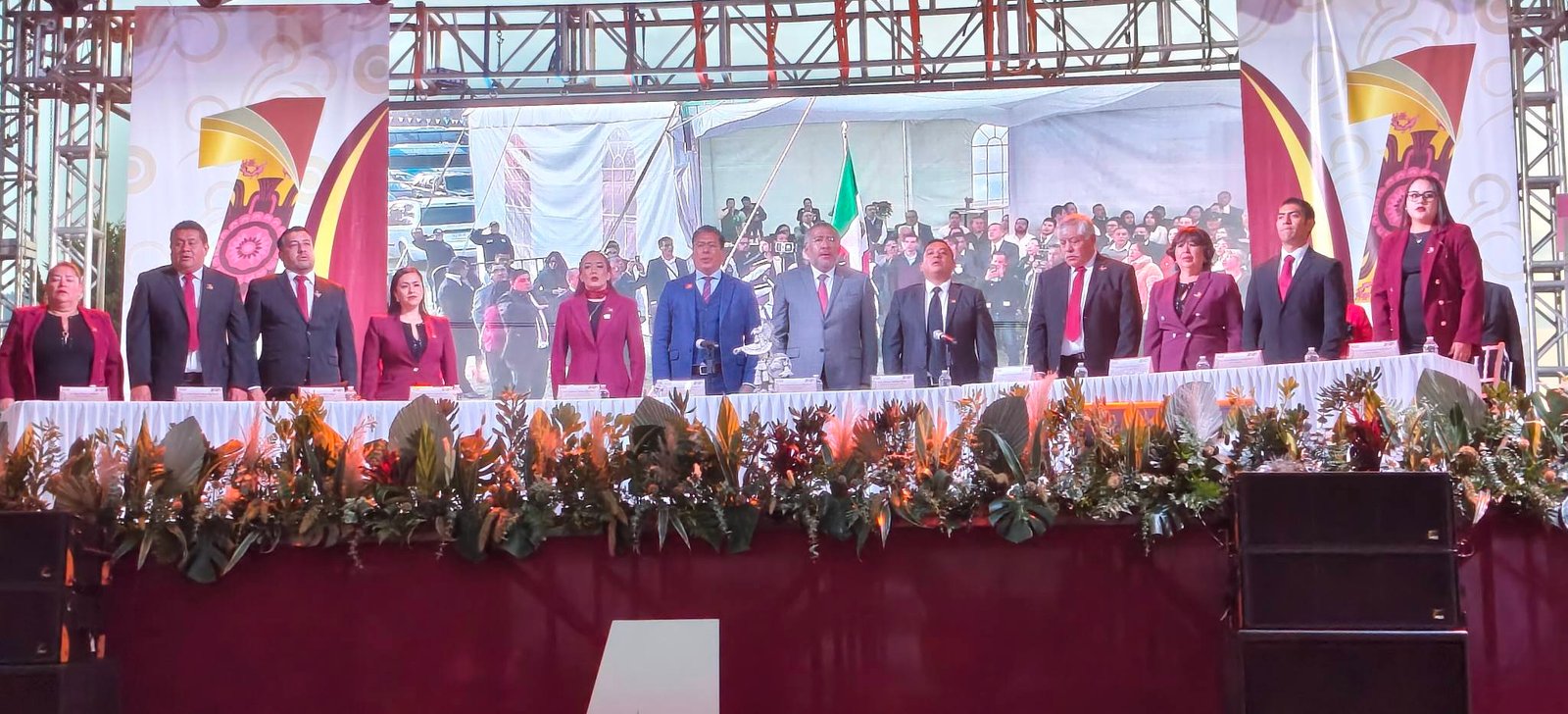 Ante la presencia del Secretario General de Gobierno Estatal, Horacio Duarte, en representación de la gobernadora Delfina Gómez Álvarez, Roberto Bautista agradeció a sus conciudadanos la confianza depositada para seguir gobernando Tenango por un segundo periodo.