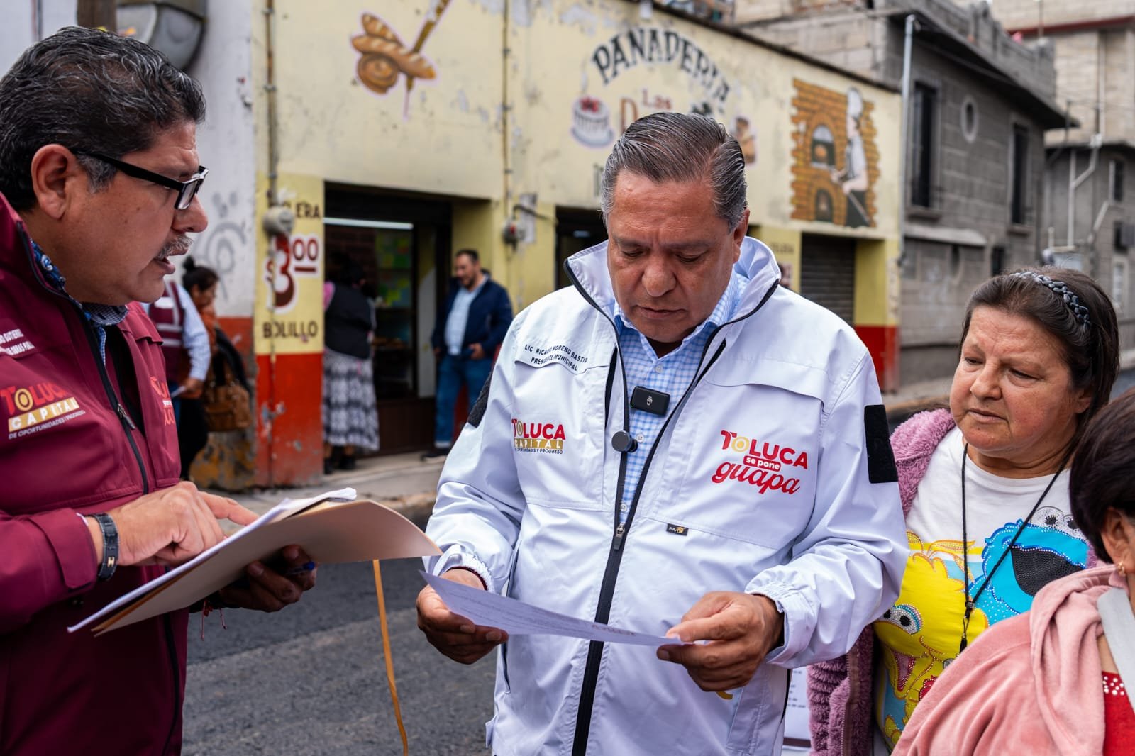 Durante una gira de supervisión, el presidente municipal Ricardo Moreno constató los trabajos que abarcan una superficie de 2 mil 565 metros cuadrados e intercambió impresiones con los vecinos, quienes le expresaron sus necesidades e inquietudes.