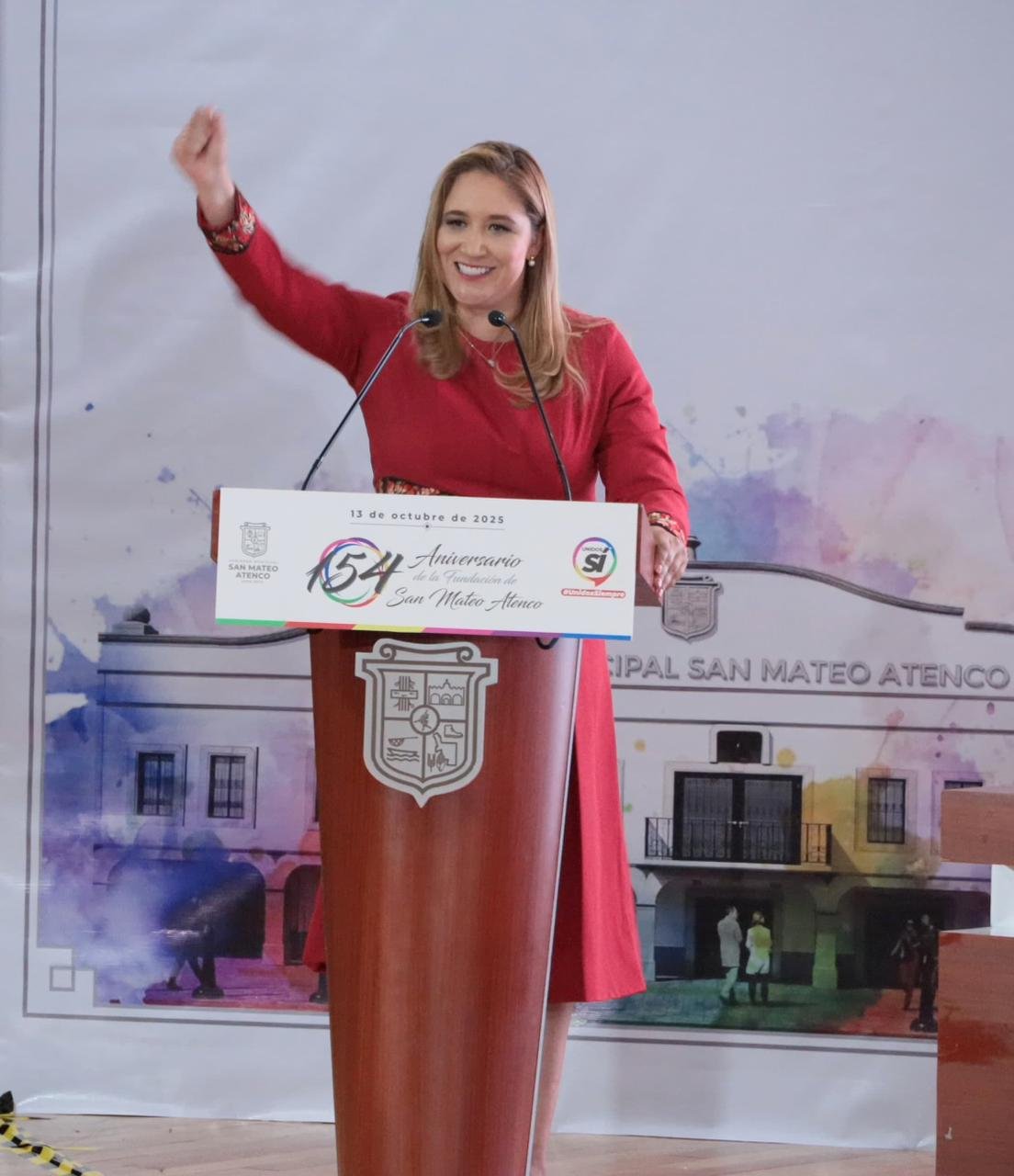 SAN MATEO ATENCO, Estado de México, 13 de octubre de 2025.- La presidenta municipal Ana Aurora Muñiz Neyra encabezó la ceremonia conmemorativa del 154 Aniversario de la fundación del municipio de San Mateo Atenco, en la que se rindió homenaje a la historia, a la identidad y al pueblo atenquense.
