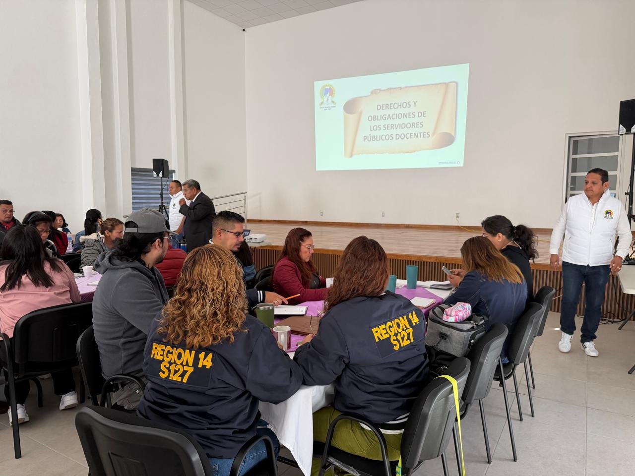 El ciclo de cuatro sesiones sabatinas denominado «El conocimiento de los protocolos de prevención, detección y actuación, el patrocinio legal del SMSEM, los derechos, obligaciones y pensiones de las personas Servidoras Públicas Docentes», se desarrolla en las Casas Sindicales de las 14 regiones, con una participación destacada de las y los delegados, quienes han asumido el compromiso de representar con conocimiento, respaldo y sensibilidad a sus compañeros en las escuelas.