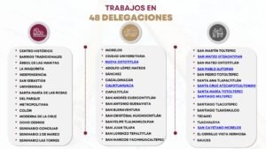 El arranque del programa se llevó a cabo de manera simultánea en las 48 delegaciones y para constatar el inicio de los trabajos, se realizaron enlaces en vivo vía zoom con cuadrillas que operan en puntos como en La Maquinita, Calixtlahuaca, San Buenaventura, San Lorenzo Tepaltitlán, San Mateo Otzacatipan, Ciudad Universitaria, Morelos, Capultitlán, Seminario, Santa Ana Tlapaltitlán y Del Parque.