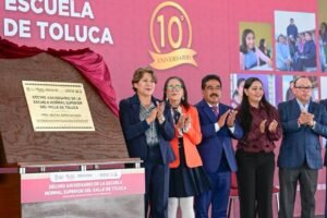 Al encabezar la ceremonia por el Décimo Aniversario de la Escuela Normal Superior del Valle de Toluca, reiteró su compromiso de seguir impulsando en el Estado de México una educación con visión humanista, científica, comunitaria e intercultural; así como mejorar la infraestructura para que los estudiantes cuenten con espacios dignos para la enseñanza.