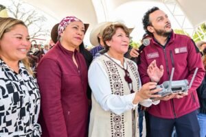 SOYANIQUILPAN, Estado de México.- Para seguir impulsando y modernizando el campo, la Gobernadora Delfina Gómez Álvarez en un trabajo coordinado con los ayuntamientos, hizo entrega de tractores y drones agrícolas a productoras y productores mexiquenses, con los cuales podrán fertilizar, controlar plagas y hacer vuelos para vigilar los cultivos, logrando mejorar la producción, reducir gastos y fortalecer sus unidades productivas.