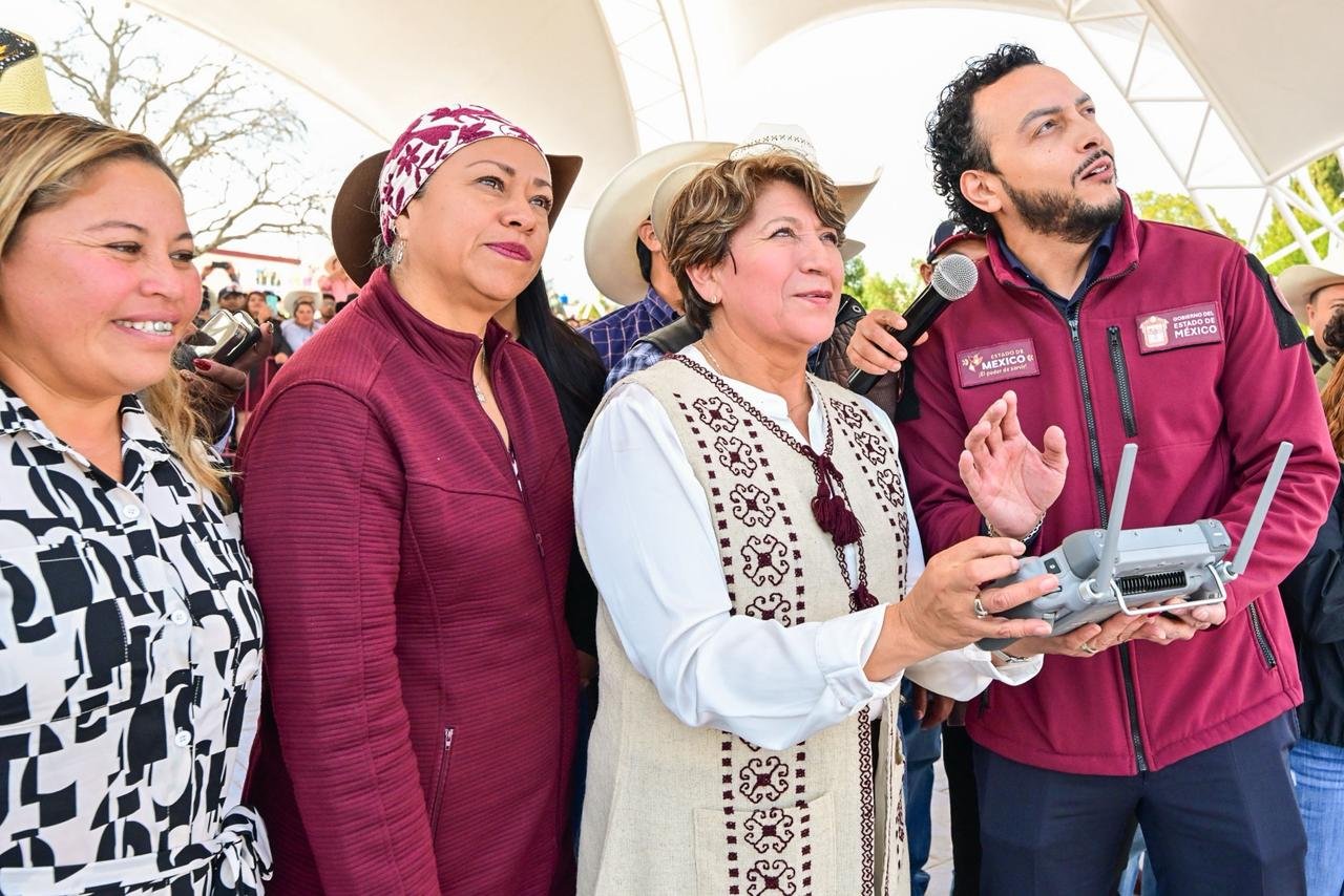SOYANIQUILPAN, Estado de México.- Para seguir impulsando y modernizando el campo, la Gobernadora Delfina Gómez Álvarez en un trabajo coordinado con los ayuntamientos, hizo entrega de tractores y drones agrícolas a productoras y productores mexiquenses, con los cuales podrán fertilizar, controlar plagas y hacer vuelos para vigilar los cultivos, logrando mejorar la producción, reducir gastos y fortalecer sus unidades productivas.