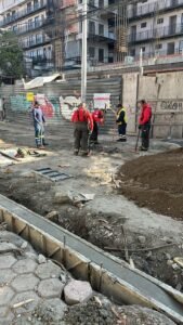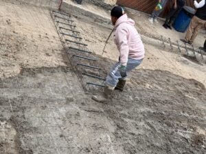 El personal hizo el trazo y la nivelación del terreno, además del afine y la compactación del suelo, para colocar una base hidráulica de 20 centímetros de espesor compuesta por materiales pétreos, la cual sirve de soporte para la pavimentación final.
