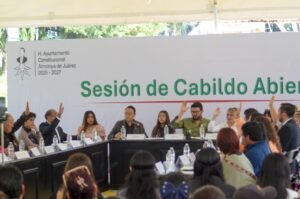 ALMOLOYA DE JUÁREZ. – El Conjunto Habitacional Suteym fue sede del Primer Cabildo Juvenil Abierto, donde jóvenes de entre 17 y 20 años, junto con vecinos y autoridades municipales, participaron en un ejercicio de diálogo para presentar propuestas y escuchar los proyectos que impulsa el Ayuntamiento de Almoloya de Juárez, que encabeza el alcalde Adolfo Solís Gómez.