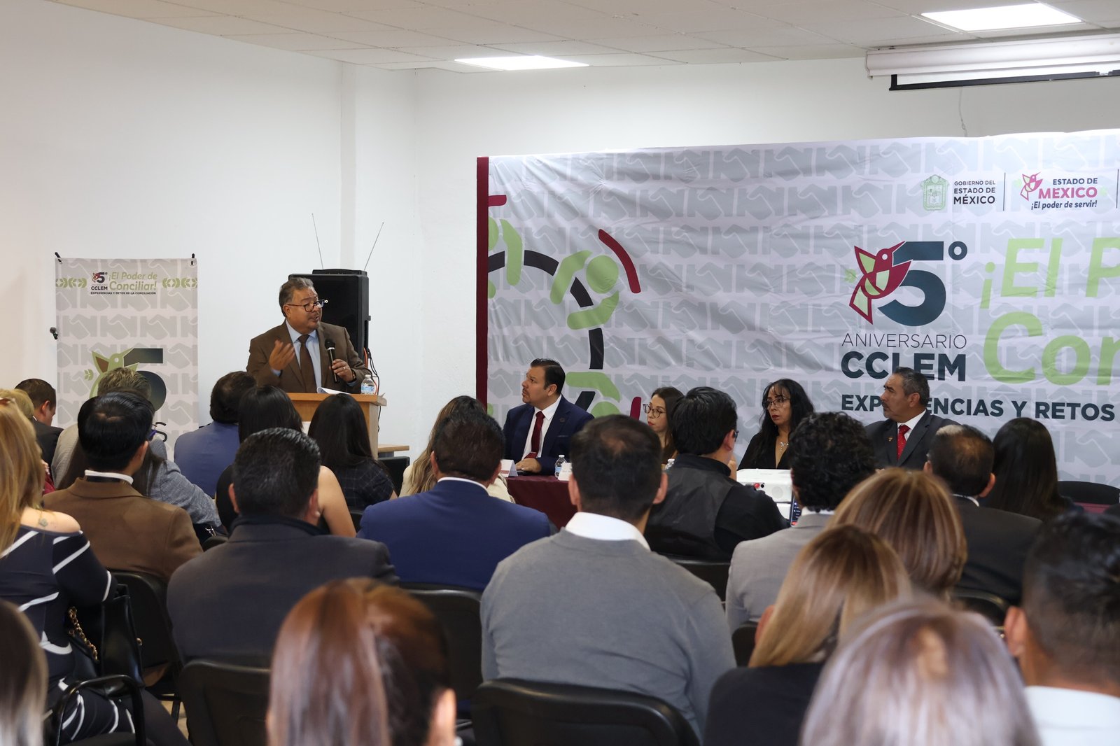 Al celebrar el quinto aniversario del CCLEM, Norberto Morales Poblete, Secretario del Trabajo, subrayó que el Gobierno de la Maestra Delfina Gómez mantiene como prioridad la resolución pronta y expedita de los conflictos laborales, particularmente los laudos, mediante mecanismos de diálogo y conciliación que favorecen la paz laboral.