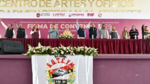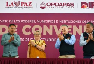 Herminio Cahue Calderón, secretario general del Suteym, y Martha Guerrero Sánchez, presidenta municipal constitucional de La Paz, encabezaron esta signa, que se llevó a cabo con la presencia de funcionarios municipales y membresía sindical.
