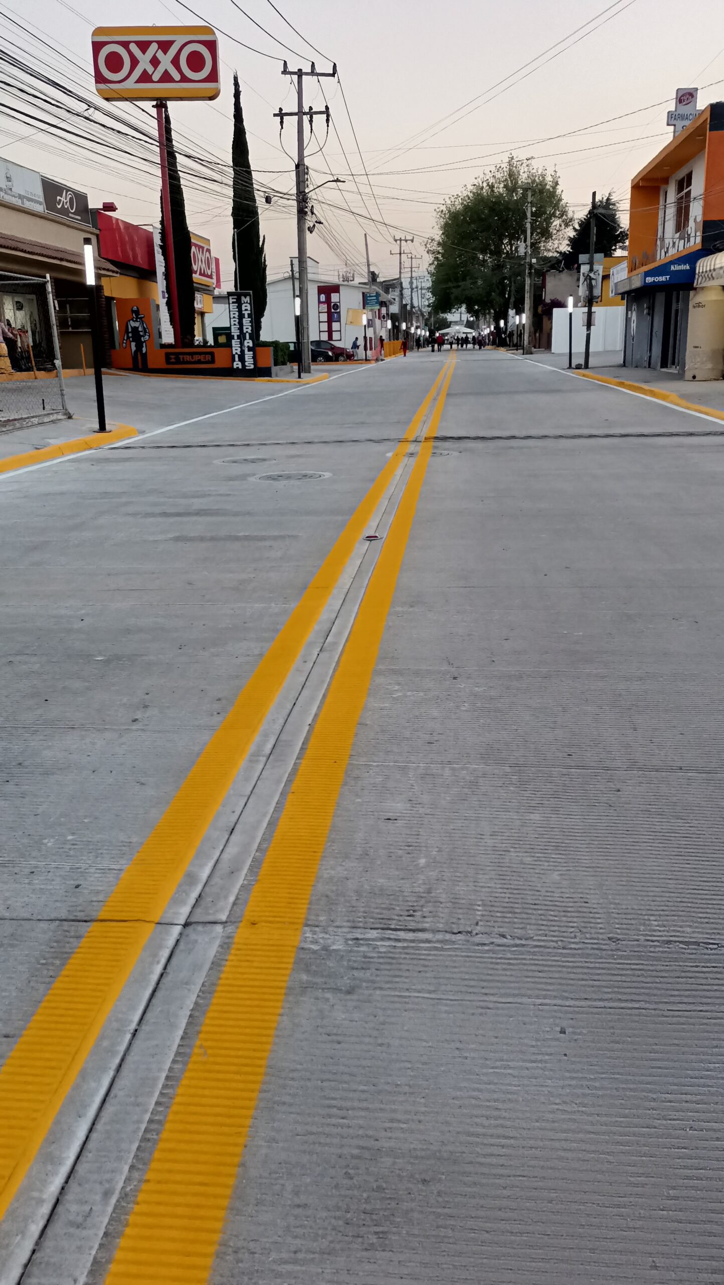 Es de mencionar que los trabajos realizados en la calle Aztecas, consistieron en el retiro del pavimento anterior y realizar uno nuevo de concreto hidráulico de 15 centímetros de espesor, reforzado con malla electrosoldada y fabricado con resistencia suficiente para tráfico pesado.