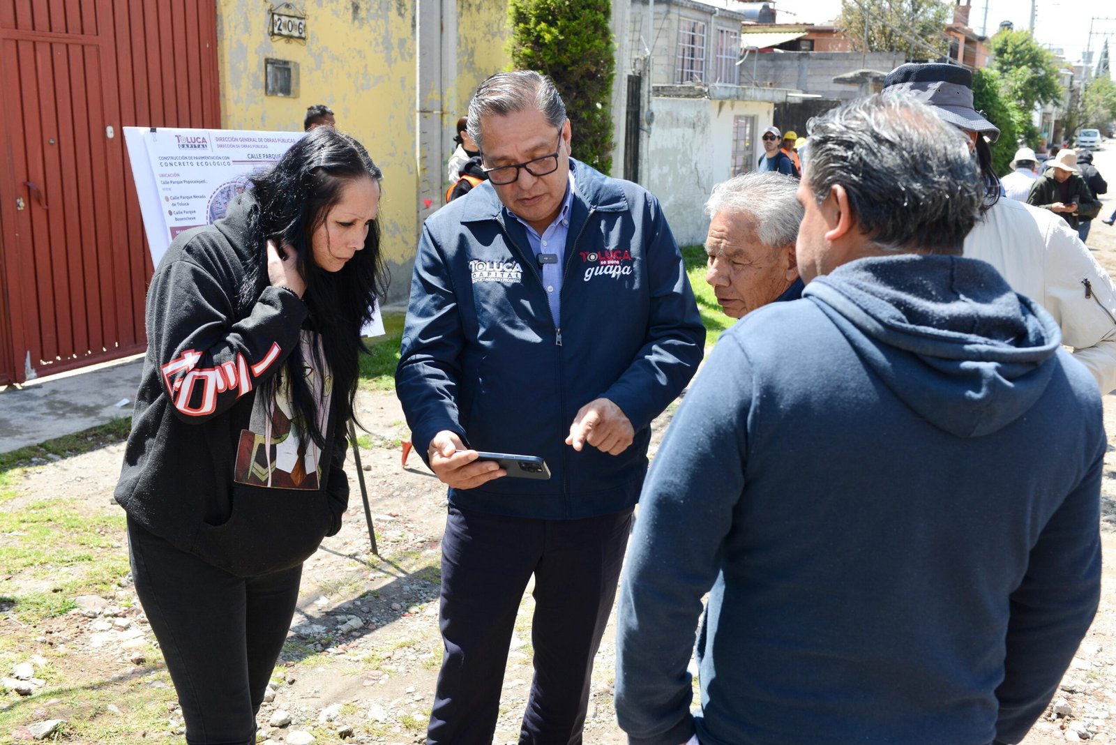 TOLUCA, Estado de México, 22 de septiembre de 2025.- En Toluca avanza el Plan Anual de Obra Pública del alcalde Ricardo Moreno a través del cual se rehabilita la infraestructura urbana para mejorar la movilidad y conectividad de las y los toluqueños, como en la calle Parque Popocatépetl de la colonia Parques Nacionales, donde se pavimenta con concreto ecológico.