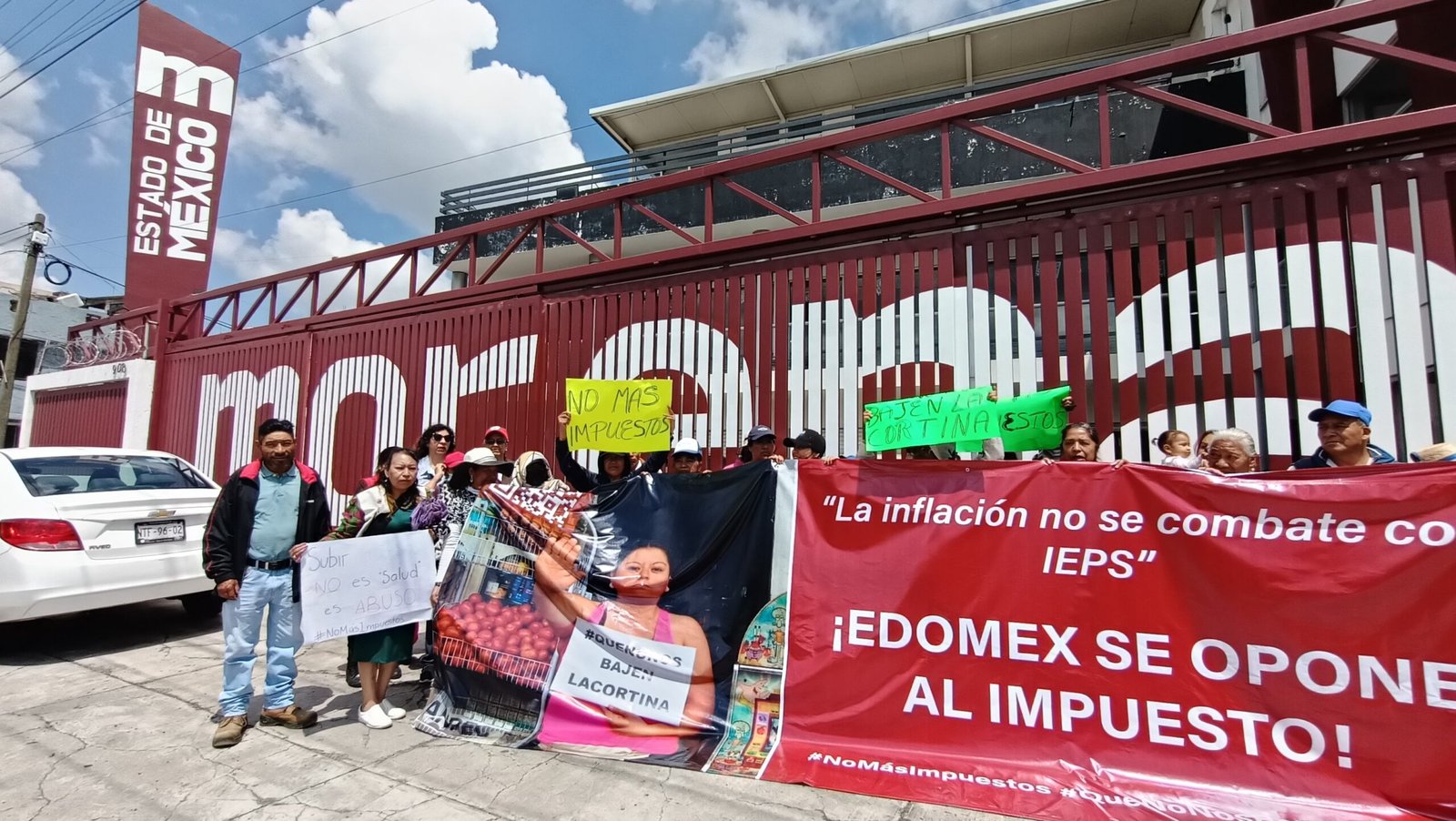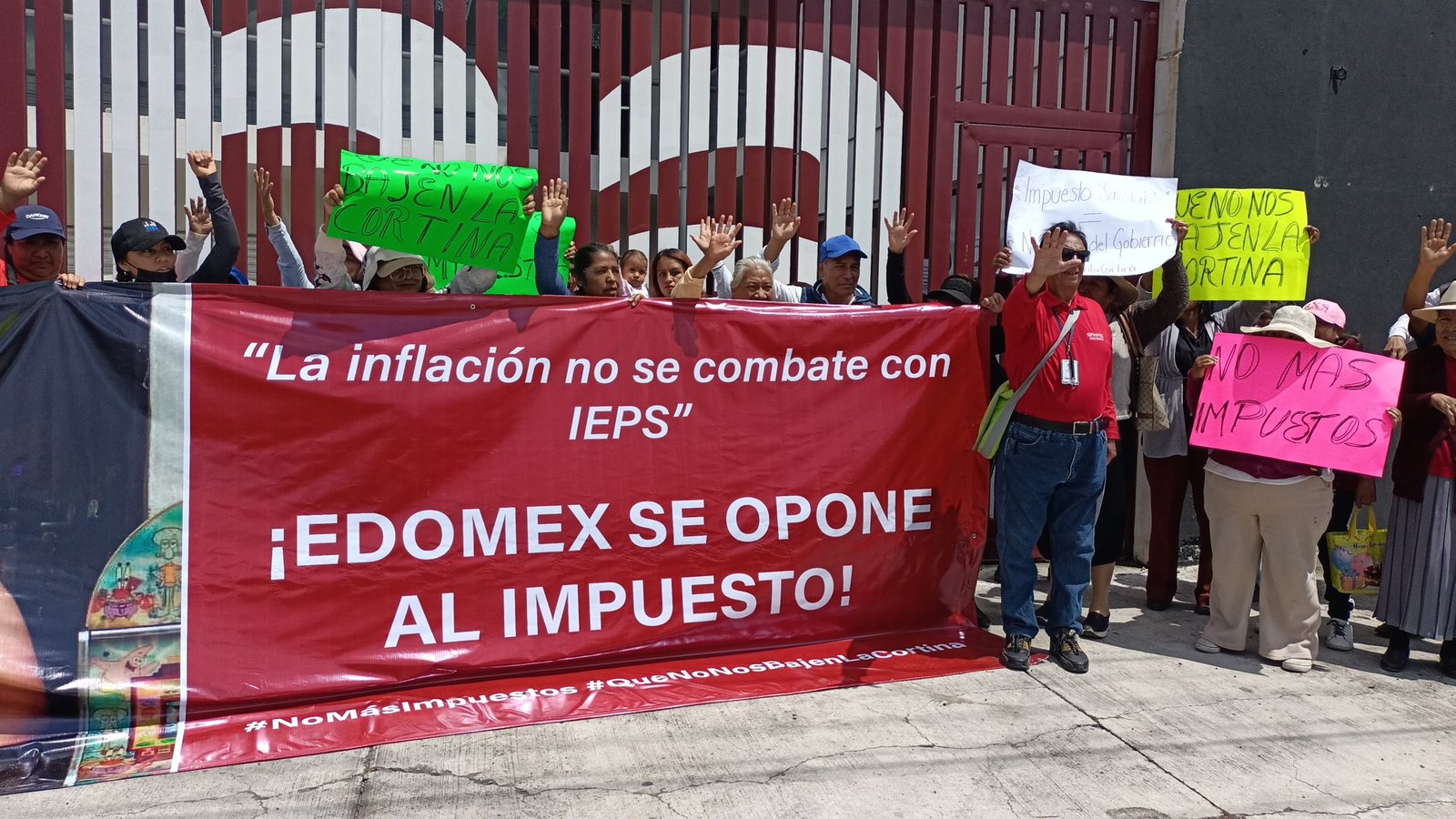 Entre consignas de «No más impuestos», «No nos bajen la cortina», «La Inflación no se combate con IEPS» y portando una lona con la leyenda de «¡Edomex se Opone al Impuesto!», los integrantes de ANPEC realizaron este día una protesta de manera pacífica afuera de las oficinas estatales de Morena para pedir a los diputados federales y locales de esta entidad su apoyo para no aprobar la propuesta de aumento en mención.