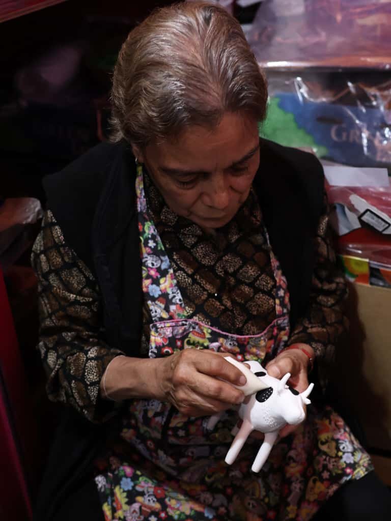 Quienes con sus manos moldean en azúcar la memoria e identidad de la capital mexiquense; como Trinidad Flores, representante de la cuarta generación de la familia creadora del puesto Calaveritas Luisita y Calaveritas Don Juan, ahora con mayor orgullo continúan elaborando y vendiendo dulce de alfeñique en los Portales, legado desde antes de 1900.