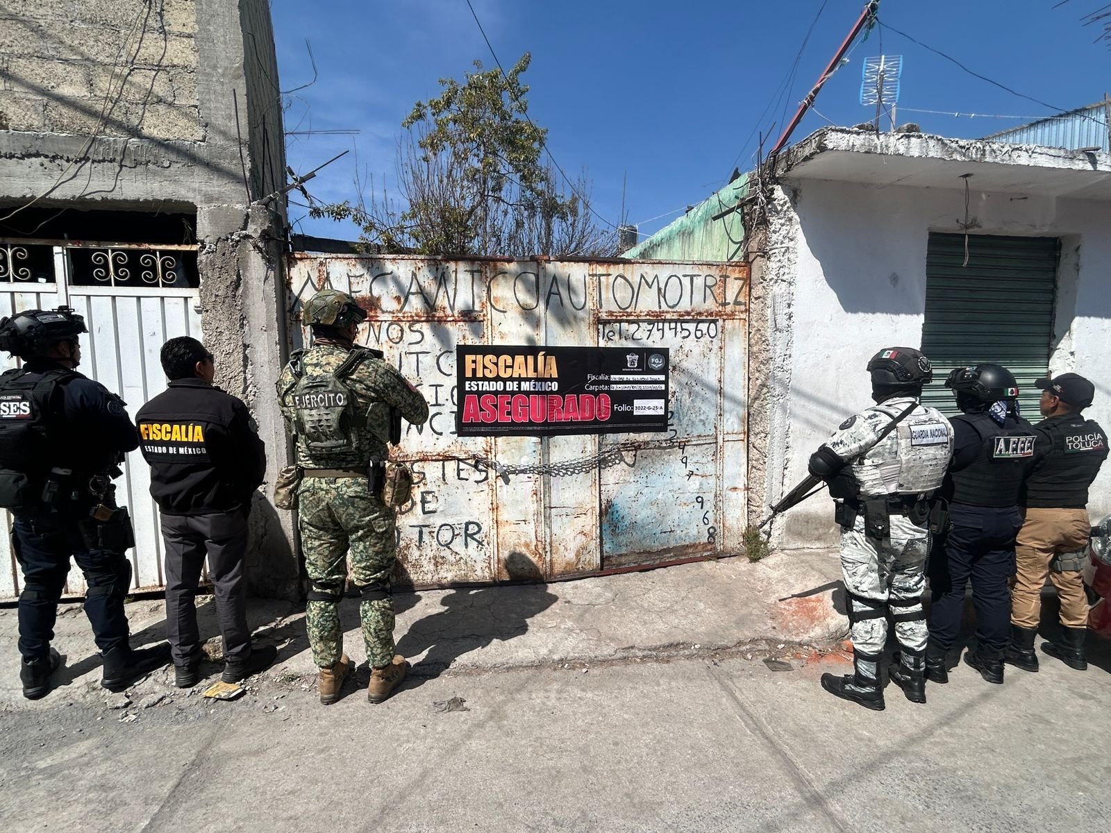 TOLUCA, Estado de México. – Acciones coordinadas en el marco de la Operación Restitución, realizadas por la Fiscalía General de Justicia del Estado de México (FGJEM), Secretaría de la Defensa Nacional (DEFENSA), Secretaría de Marina (MARINA), Guardia Nacional (GN), Secretaría de Seguridad estatal (SSEM) y policías municipales han permitido el aseguramiento de 1,524 inmuebles relacionados con el delito de despojo y contra la propiedad en 63 municipios del territorio mexiquense.