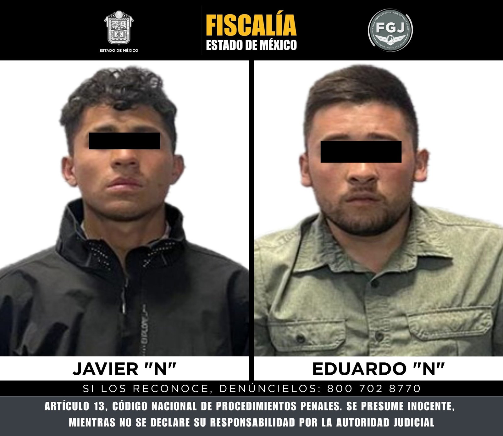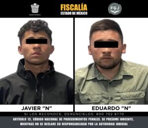 ACAMBAY, Estado de México. – Elementos de la Fiscalía General de Justicia del Estado de México (FGJEM) lograron la detención en flagrancia de dos masculinos identificados como Eduardo “N” y Javier “N”, por ser los presuntos responsables de los delitos de simulación de vehículo oficial y uso indebido de insignias.