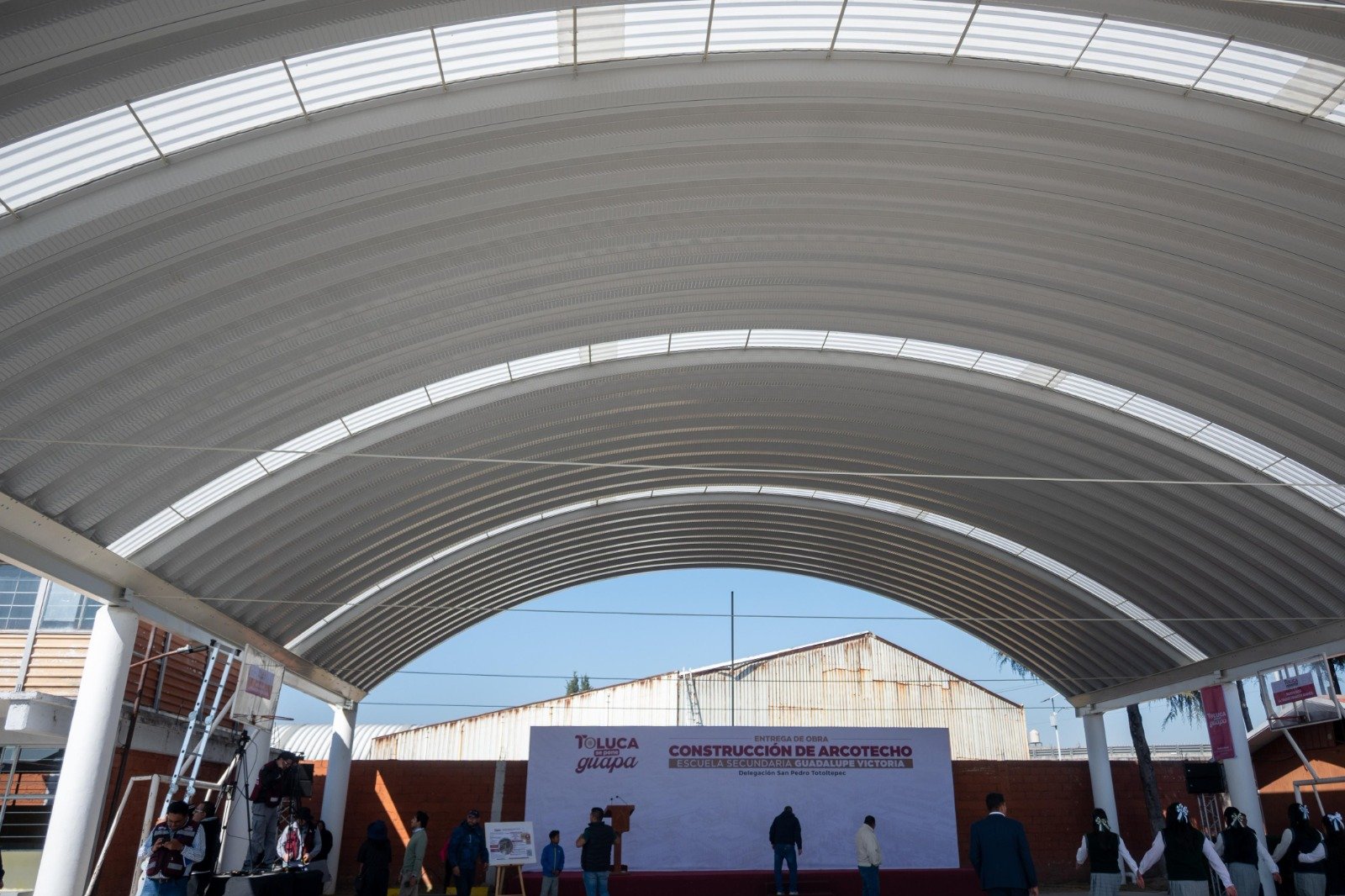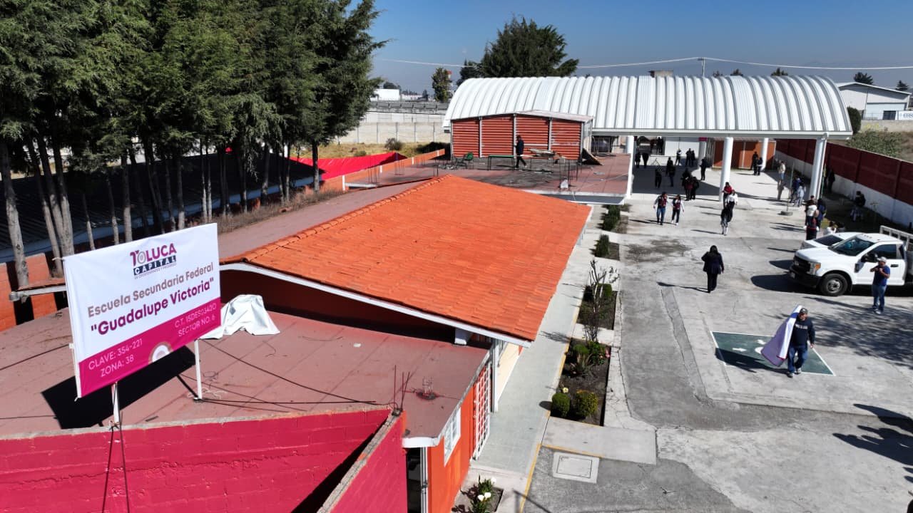 TOLUCA, Estado de México. – El alcalde Ricardo Moreno refrenda su apoyo decidido a la educación con la entrega del arcotecho en la Secundaria Guadalupe Victoria, en San Pedro Totoltepec, que dignifica la vida académica, fortalece la convivencia y favorece el desarrollo integral de las alumnas y alumnos, al permitirles realizar actividades cívicas, formativas, culturales y deportivas en condiciones adecuadas y seguras.