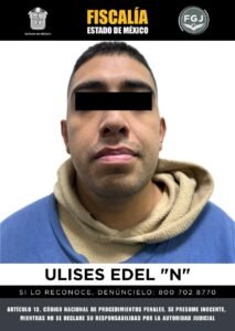 LERMA, Estado de México.- La Fiscalía General de Justicia del Estado de México obtuvo de un Juez un auto de vinculación a proceso en contra de Ulises Edel “N” por ser el presunto responsable del delito de homicidio calificado, cometido en agravio de un masculino.