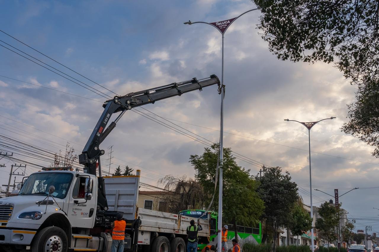 TOLUCA, Estado de México. – Toluca sigue llenándose de luz y se consolida como una capital con más seguridad y tranquilidad, pues el Presidente Municipal Ricardo Moreno atiende su compromiso de iluminar el territorio local, con acciones como el suministro y colocación de postes y luminarias en avenida Alpinismo en beneficio de cerca de 50 mil personas.