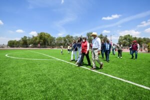 TEOTIHUACÁN, Estado de México. – En el marco de “2026, Año de las Obras en EdoMéx”, la Gobernadora Delfina Gómez entregó la Unidad Deportiva Atlatongo en Teotihuacán; esta acción, que da respuesta a una demanda ciudadana de más de una década, requirió una inversión de 22.4 millones de pesos y beneficiará a 6 mil 300 habitantes