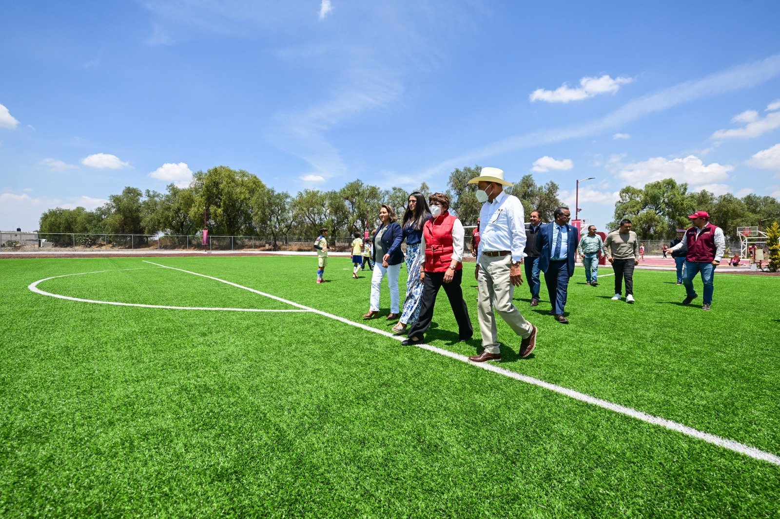 “La confianza que depositaron en este Gobierno de la Transformación da resultados y hacemos entrega de esta Unidad Deportiva. Recuerdo cuando vine a colocar la primera piedra y es una alegría que ya esté terminado este proyecto”, señaló la Mandataria mexiquense ante los beneficiarios.