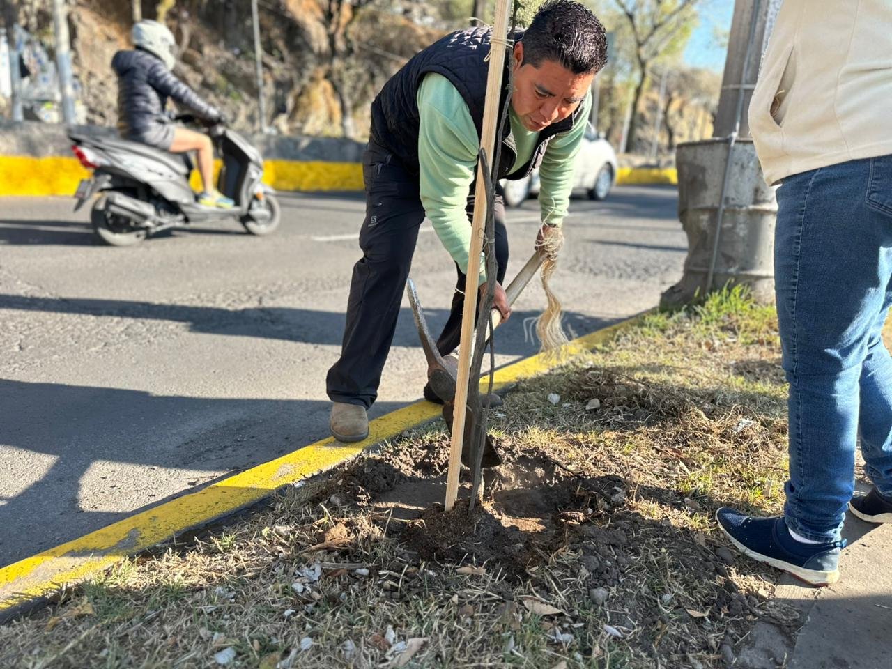 TOLUCA, Estado de México. – Para fortalecer su crecimiento y asegurar la supervivencia del mayor número de ejemplares plantados hace algunos meses en la zona de Paseo Matlalzincas, servidores públicos de la Dirección General de Medio Ambiente participaron con entusiasmo, en distintos trabajos de mantenimiento del arbolado.