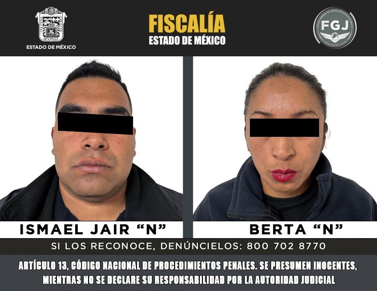 TOLUCA, Estado de México. – La Fiscalía General de Justicia del Estado de México (FGJEM) cumplimentó orden de aprehensión en contra de Berta “N” e Ismael Jair “N”, policías municipales de Temoaya, por su presunta responsabilidad en el delito de homicidio calificado por haberse cometido con ventaja en agravio de un masculino.