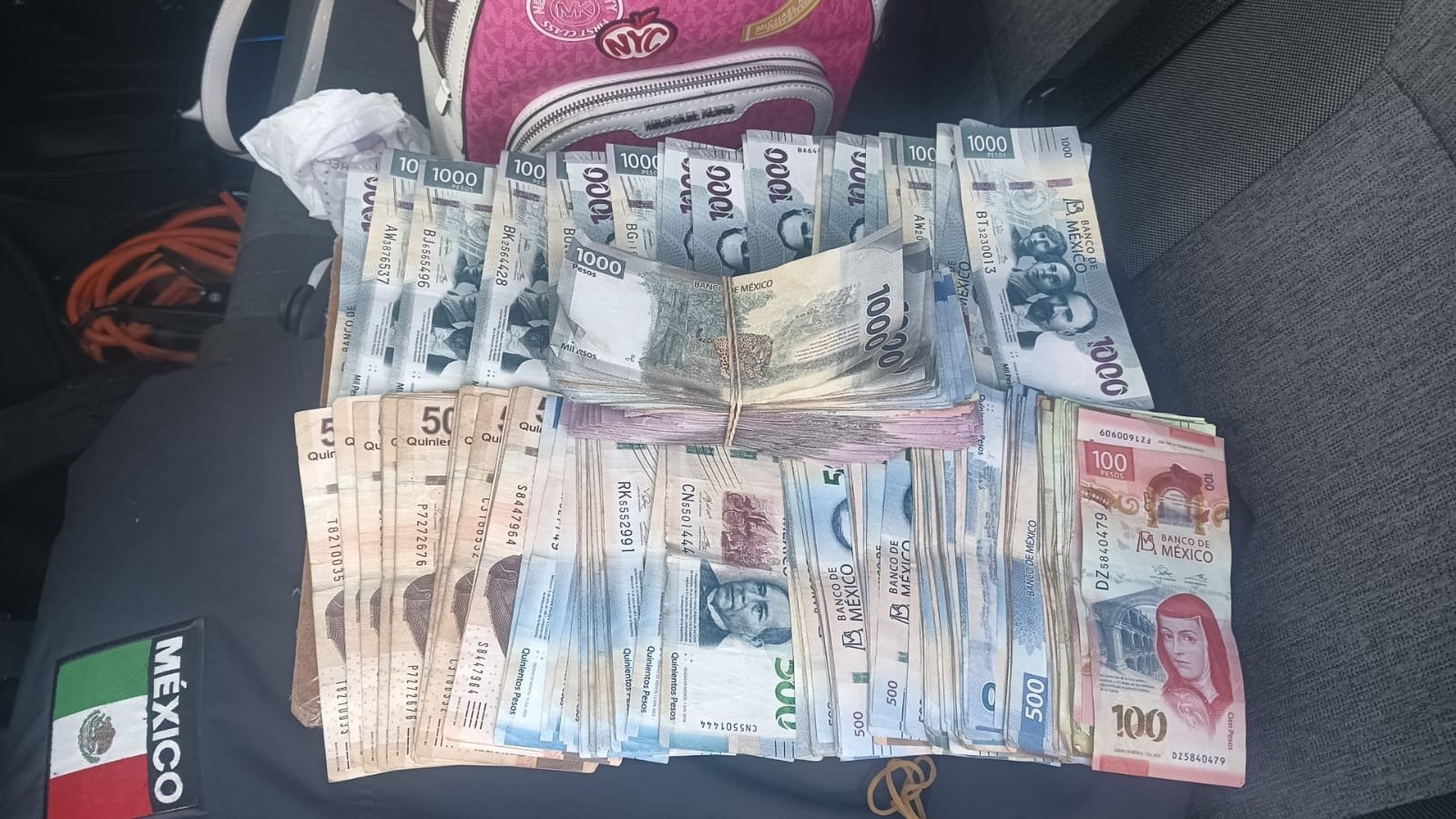 Apegados a protocolo de actuación, los uniformados estatales iniciaron una breve persecución que culminó metros adelante donde con comandos verbales le marcaron el alto a los conductores, a fin de realizar una revisión física a los datos de identificación vehicular y a sus personas; tras llevar a cabo la inspección las fuerzas del orden decomisaron diversos sobres amarillos y una bolsa de plástico con dinero en efectivo en su interior, donde se contabilizó 179 mil 270 pesos en efectivo además aseguraron cuatro celulares, un laptop, una libreta con aparentes anotaciones de pago de cuotas y posible droga.