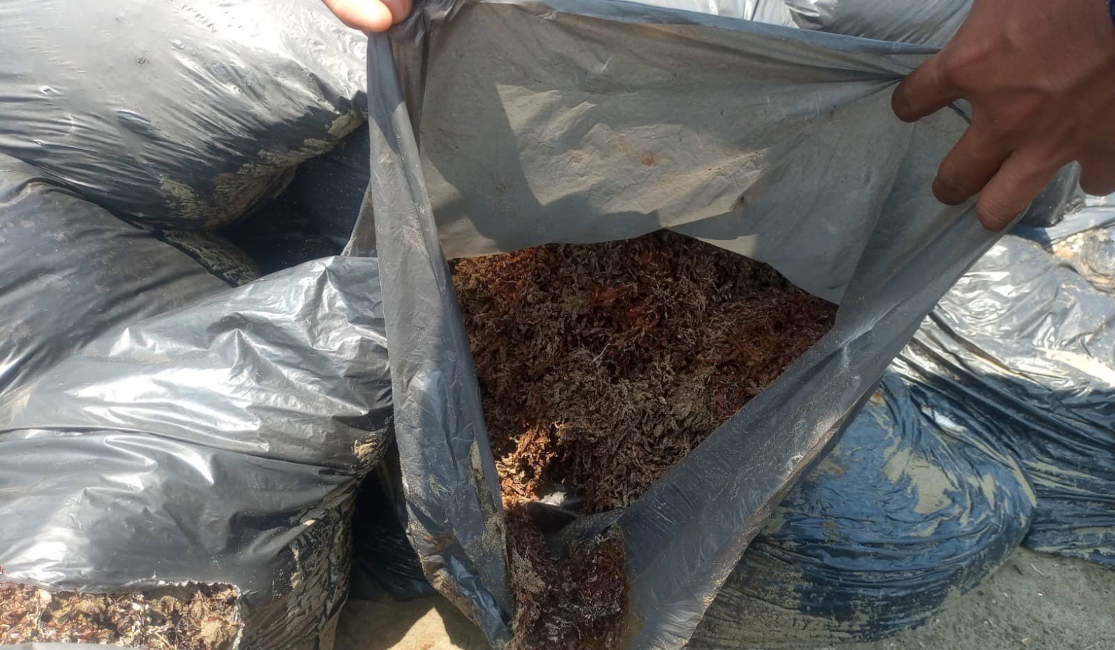 Con el propósito de atender dicha situación, personal naval de esta Institución realizó un reconocimiento aéreo en la zona comprendida entre Punta San Juan y Playa Joel, mediante el despliegue de un helicóptero tipo Panther, así como de personal de la Tercera Zona Naval, quienes efectuaron recorridos de inspección en el área, incluyendo la apertura de diversas bolsas para verificar su contenido, además de establecer comunicación con pobladores y personal responsable de efectuar la limpieza de la playa; tras la verificación en sitio, se constató que el material contenido en dichas bolsas corresponde sargazo y no a hidrocarburos (chapopote), como se ha señalado de manera errónea.