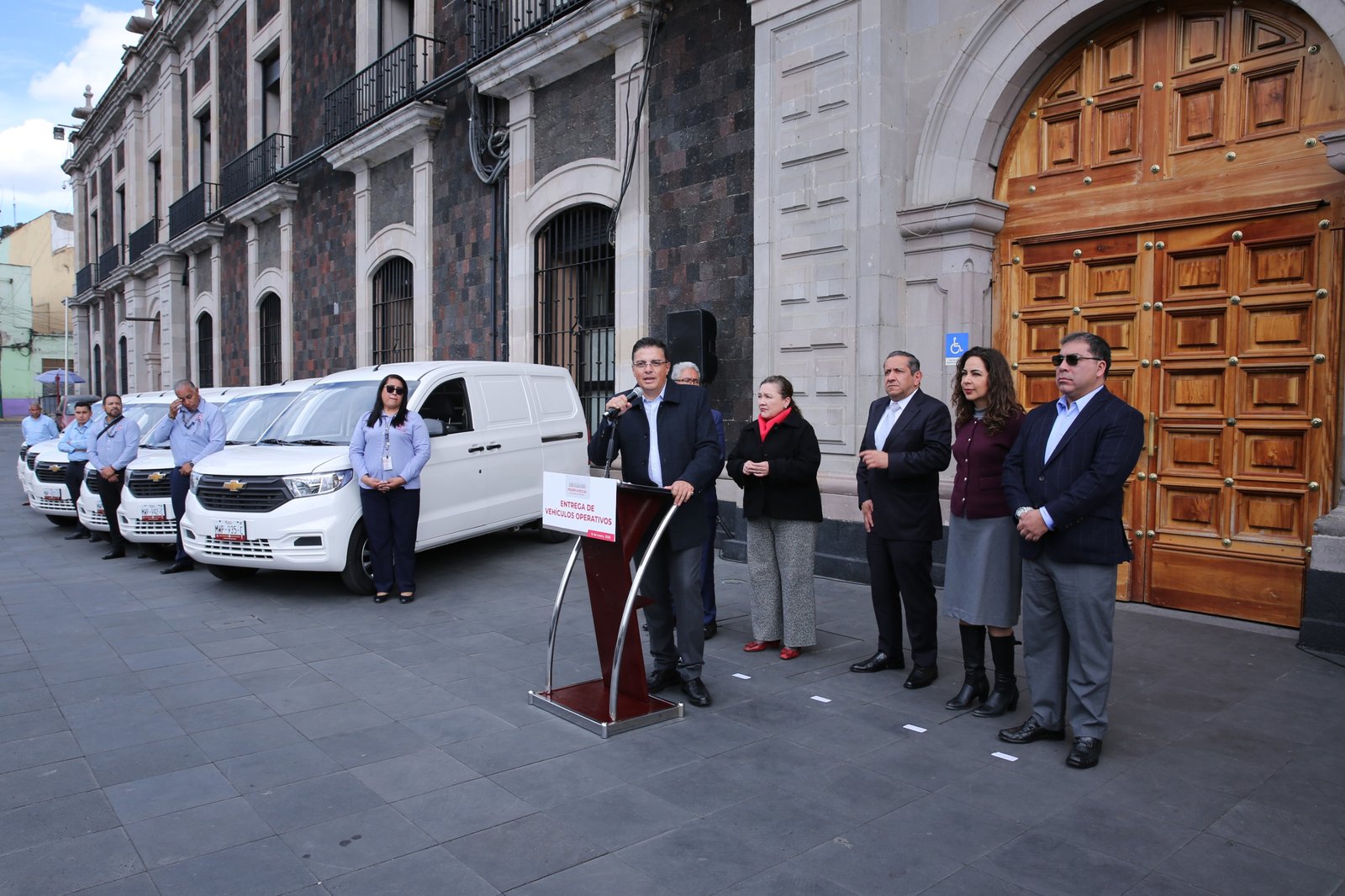 TOLUCA, Méx. – Como parte de las acciones orientadas a fortalecer la operación cotidiana del Poder Judicial del Estado de México y dignificar las condiciones laborales de su personal, los Magistrados Presidentes, Héctor Macedo García del Tribunal Superior de Justicia y Fernando Díaz Juárez del Órgano de Administración Judicial, entregaron 12 camionetas destinadas al envío de correspondencia.