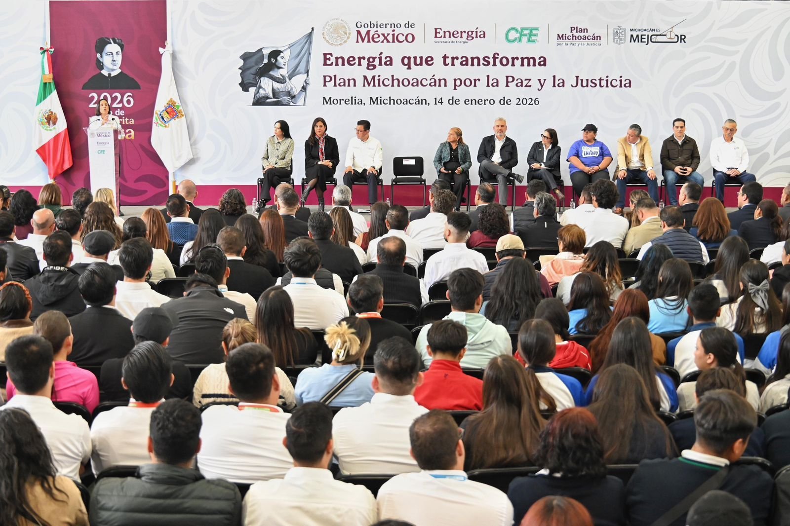 La directora general de la CFE, Emilia Esther Calleja Alor, informó que de enero a julio de 2026, la CFE realizará 765 obras en beneficio de 20 mil usuarios con una inversión total de 304 millones de pesos. Con estos trabajos la entidad michoacana será la cuarta en todo el país con una cobertura total de electrificación.