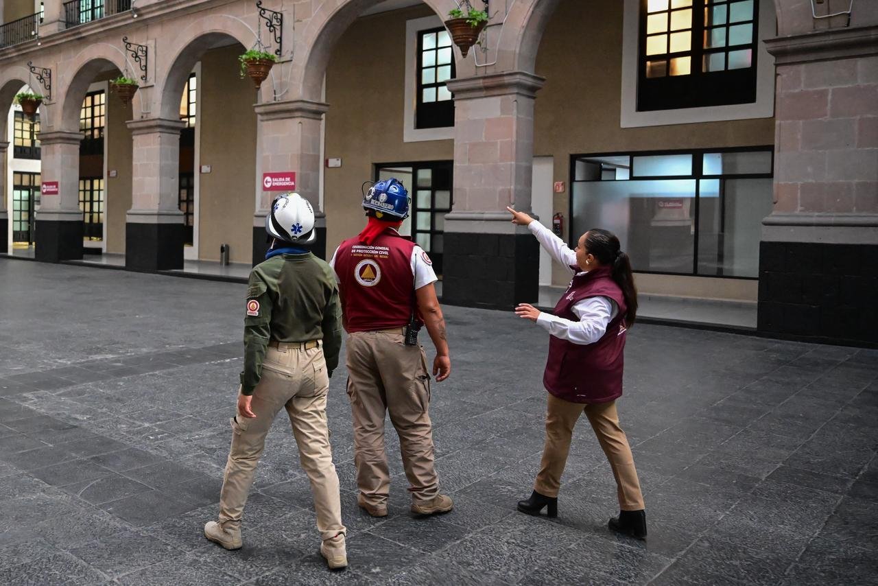 En el Palacio de Gobierno del Estado de México fueron evacuadas mil 144 personas en un tiempo promedio de 2:20 minutos, al aplicar protocolos internos de protección civil y revisión preventiva de inmuebles.