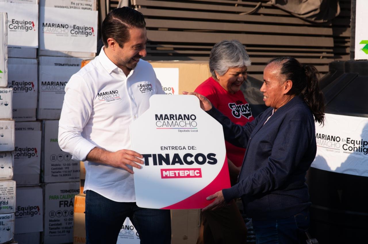 METEPEC, Estado de México. – El diputado Mariano Camacho entregó calentadores solares y tinacos a familias de San Jerónimo Chicahualco, para apoyar su economía.