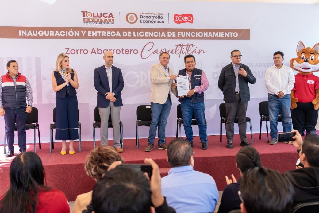 Durante la inauguración del Zorro Abarrotero Capultitlán, el Presidente Municipal explicó que Toluca se ha convertido en referente de la facilidad y agilidad para la obtención de licencias de funcionamiento pues, recalcó, “son bienvenidas las inversiones en la capital mexiquense, porque son para el bienestar de nuestra gente, porque queremos una economía más sólida, estable y dinámica”.