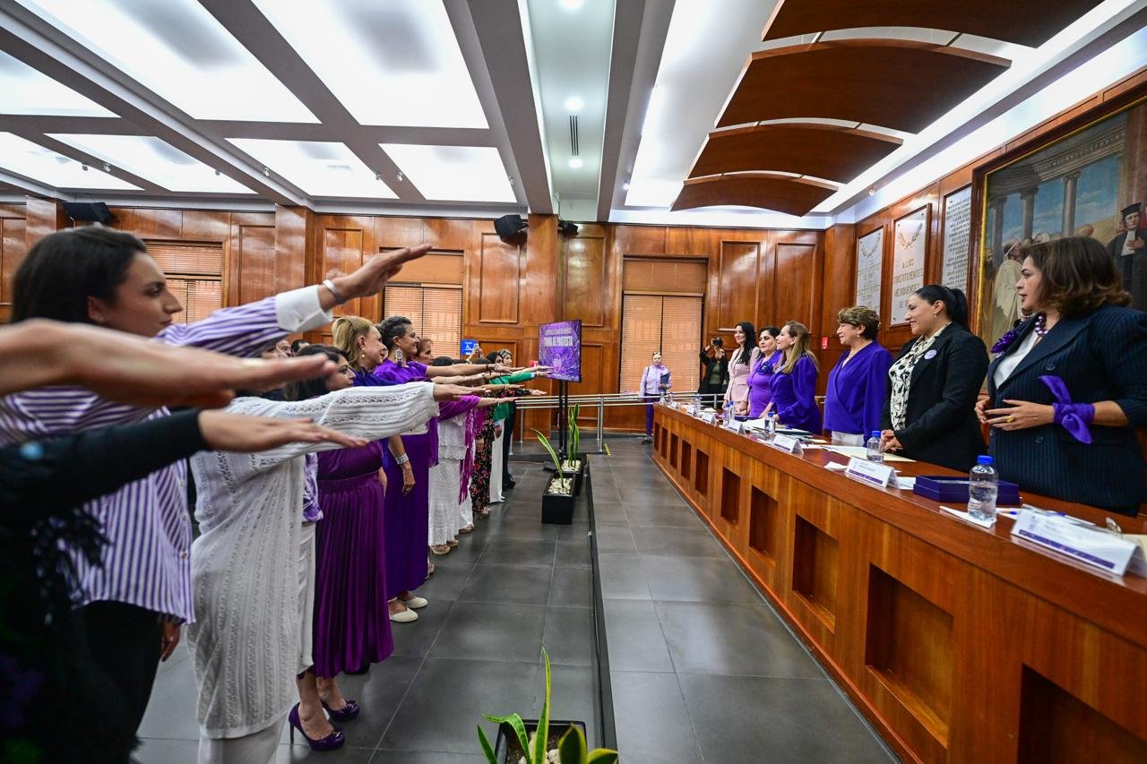 TOLUCA, Estado de México.- La Gobernadora Delfina Gómez Álvarez acudió como invitada de honor a la toma de protesta de las nuevas integrantes del Comité Directivo del Colectivo 50+1, capítulo Estado de México, conformado por mujeres destacadas en diversos ámbitos de la vida pública: políticas, empresarias, magistradas, juzgadoras, académicas, activistas y profesionistas, quienes con su experiencia y trayectoria abren camino para las siguientes generaciones en favor de la paridad de género.