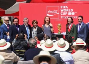 ZUMPANGO, Estado de México.– La Gobernadora Delfina Gómez Álvarez recibió el Trofeo Original de la Copa Mundial 2026 de la FIFA en el Aeropuerto Internacional Felipe Ángeles (AIFA), marcando el inicio de su recorrido por territorio nacional rumbo a la máxima justa deportiva.