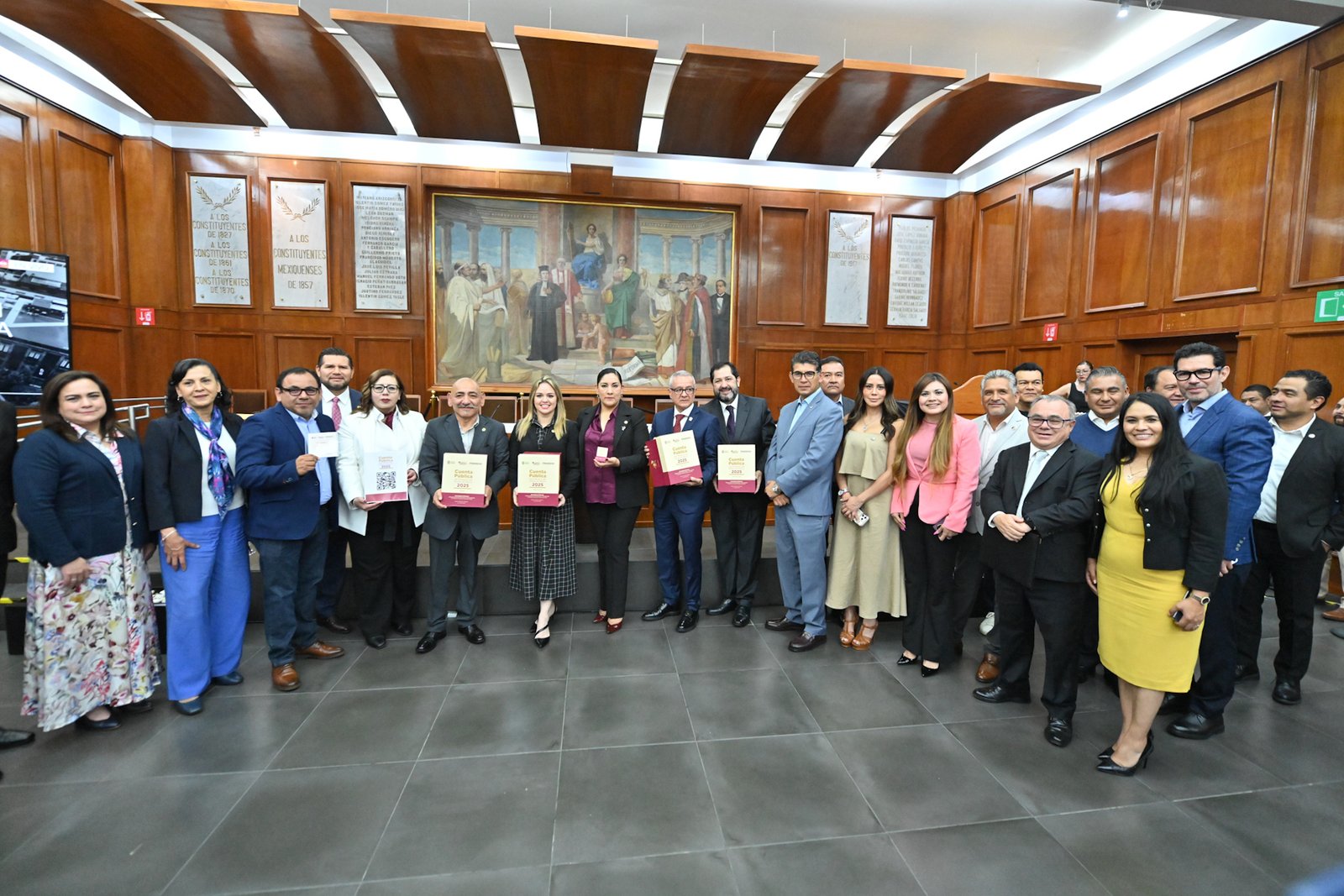 En el acto, Oscar Flores Jiménez, secretario de Finanzas, informó que la cuenta pública se integra por 13 tomos con información financiera, contable, presupuestal y programática, 10 volúmenes complementarios, así como un compendio digital del patrimonio estatal que da cuenta, con claridad y transparencia, de la situación financiera de la entidad.