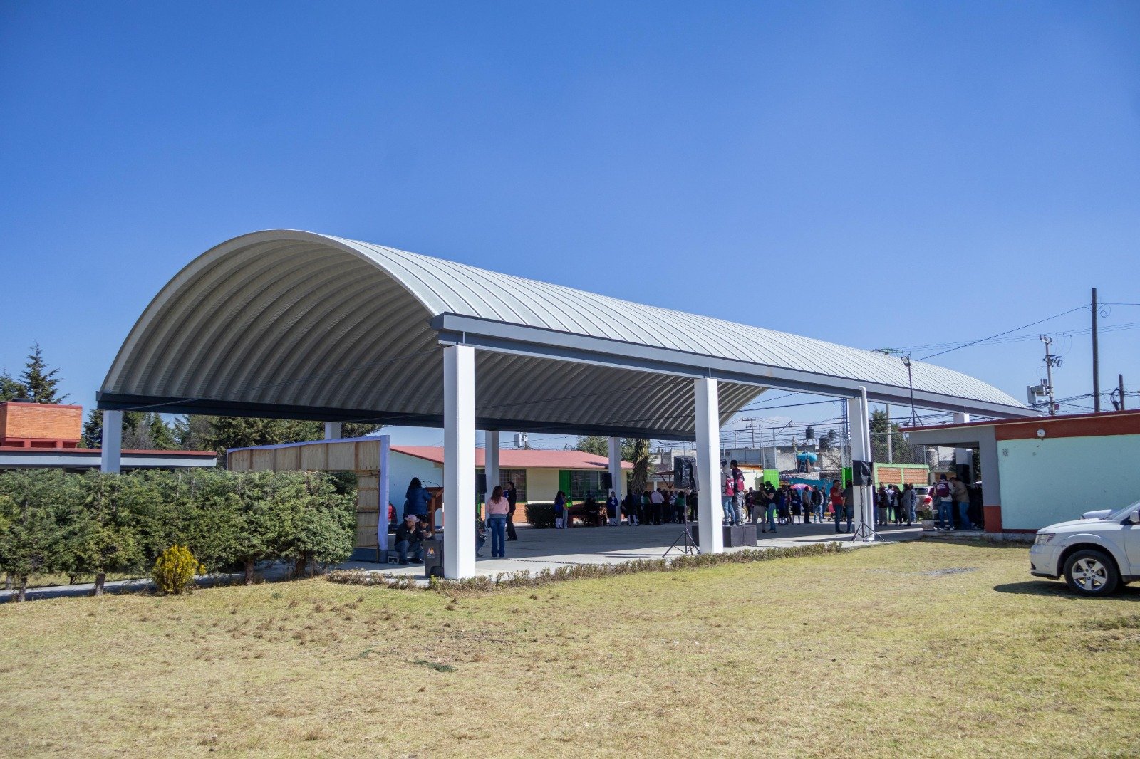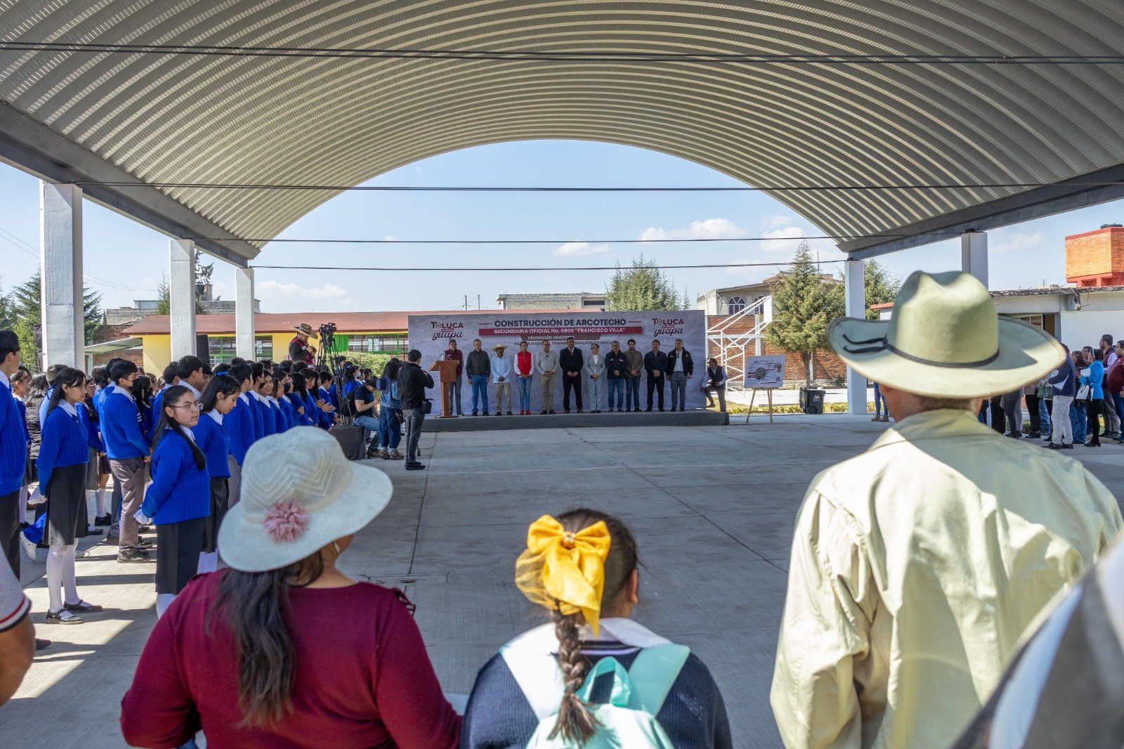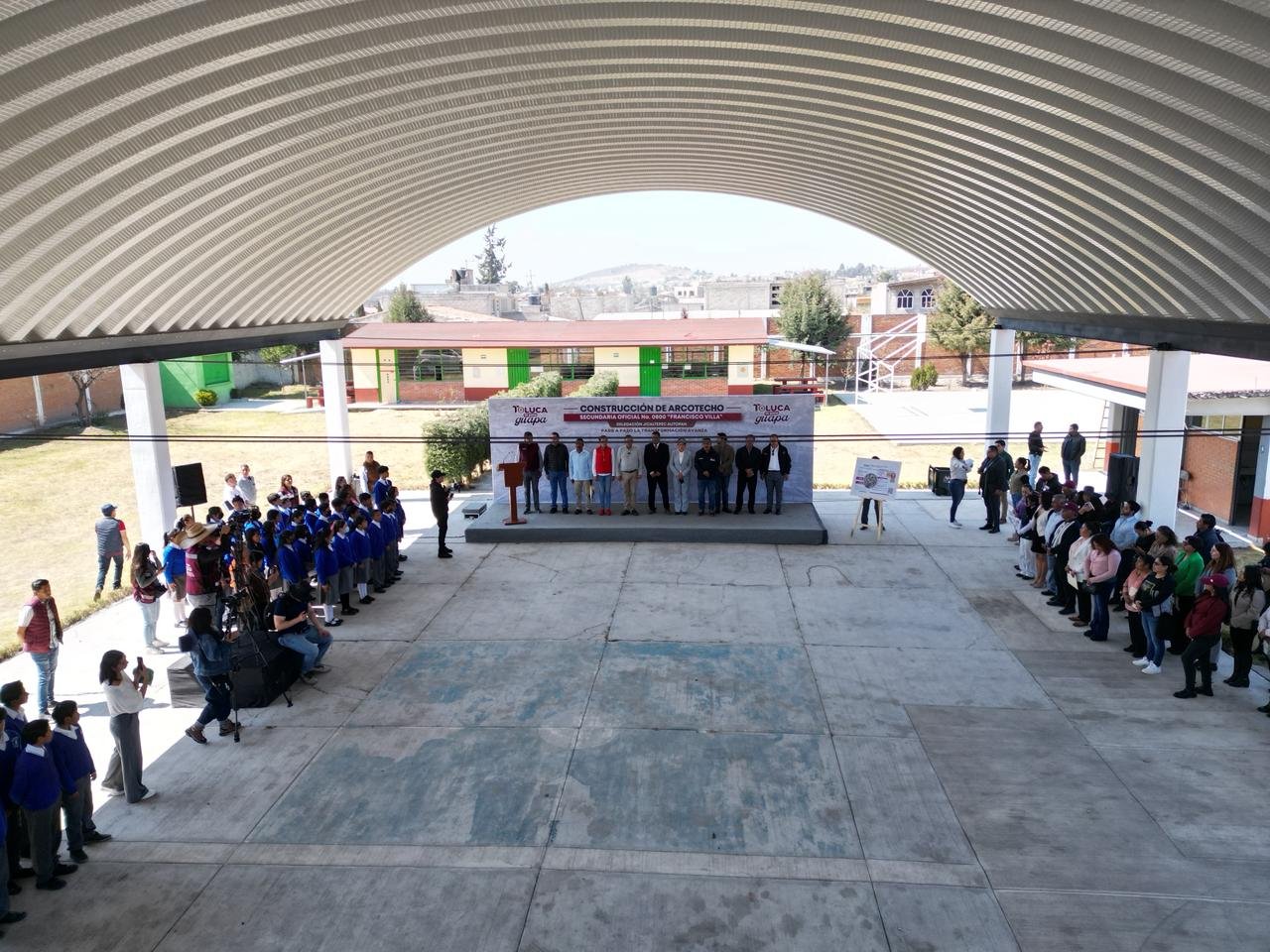TOLUCA, Estado de México. – El Presidente Municipal, Ricardo Moreno, continúa cumpliendo sus compromisos con la población y entrega nuevo arcotecho en la Escuela Secundaria Oficial No. 0800 Francisco Villa de Jicaltepec Cuexcontitlán, que la transforma en un espacio digno, seguro y multifuncional para 117 estudiantes, que fortalecerán su formación académica, deportiva, cultural y comunitaria.