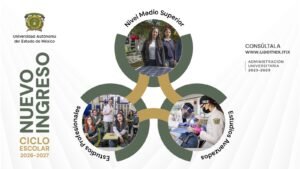 TOLUCA, Méx. – La Universidad Autónoma del Estado de México (UAEMéx) publicó las convocatorias de Nuevo Ingreso 2026 para Educación Media Superior, Estudios Profesionales y Estudios Avanzados, dirigidas a las personas interesadas en integrarse a alguno de sus programas académicos en las distintas modalidades educativas.