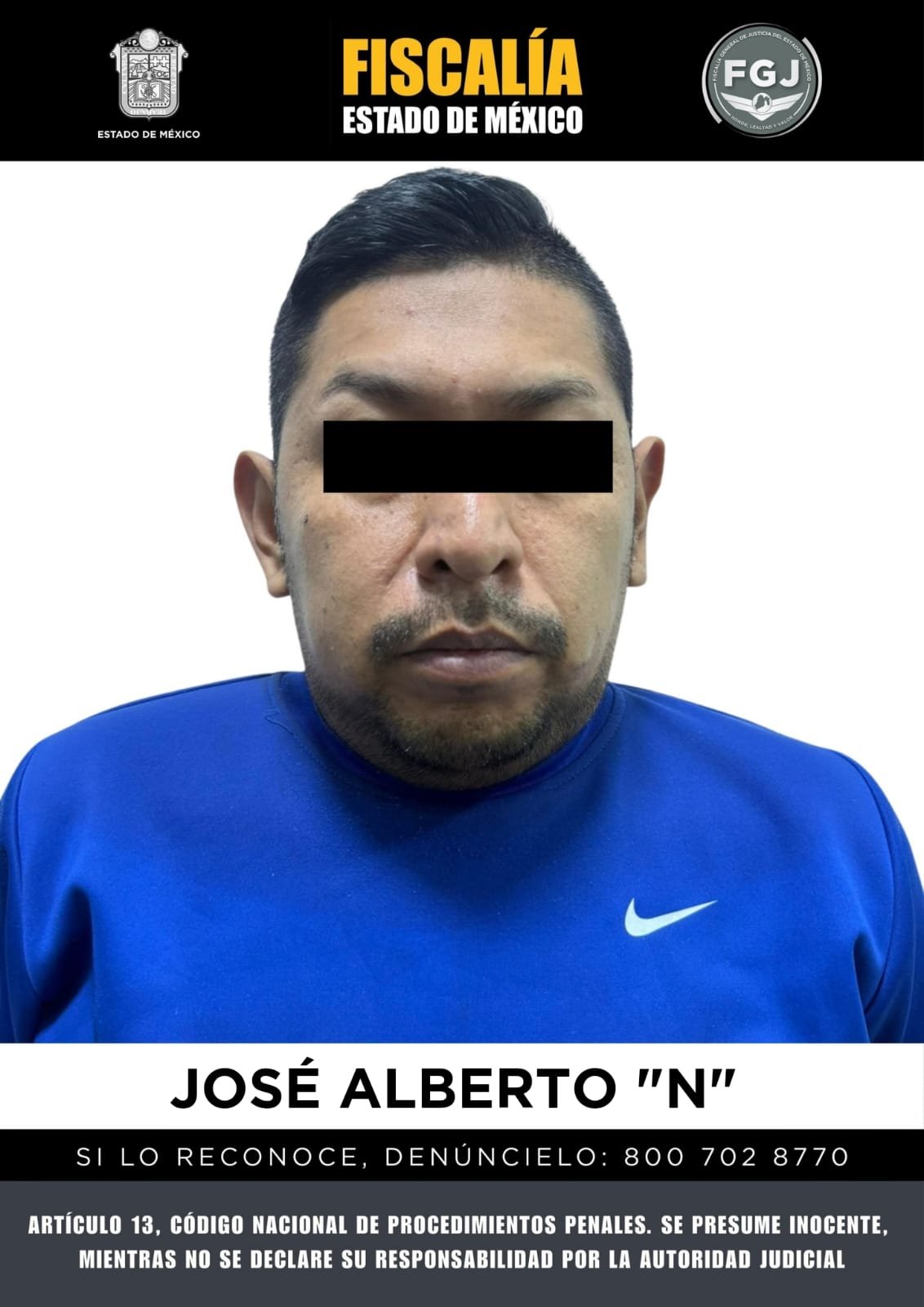 Al continuar con las investigaciones correspondientes, el Agente del Ministerio Público recabó más información que le permitió conocer la identidad de los presuntos responsables y su posible ubicación, por lo que solicitó al Juez una orden de aprehensión, la cual fue cumplimentada, permitiendo así la detención de José Alberto “N” en la colonia Gustavo Baz Prada, de Nezahualcóyotl, en el Estado de México e ingresado al Centro Penitenciario y de Reinserción Social de Lerma.